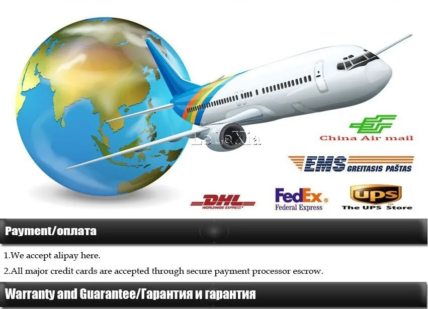 1. Доставка: DHL(5-7 дней) EMS(10-15 дней) авиа-отправление Почты Китая (15 или более дней) Один заказ более 200 долларов США, мы можем дать вам бесплатную DHL доставку 2. Дата доставки: У нас есть много запасов, поэтому после оплаты мы отправим вам груз в течение 1-2 рабочих дней 3, Отзывы 1. Ваши отзывы очень важны для нас, пожалуйста, уделите несколько секунд, чтобы оставить хороший отзыв 2. Пожалуйста, свяжитесь с нами, прежде чем оставлять нейтральные или отрицательные отзывы. Мы постараемся сделать все возможное, чтобы решить проблему и дать вам приятный опыт покупок 4. Оплата: Безопасно оплатить через ESCROW, потому что только вы получаете товары и подтверждаете получение, платеж может быть переведен на мой счет через ESCROW. Пожалуйста, сделайте платеж вовремя, когда вы размещаете заказ, чтобы мы могли отправить товар как можно скорее Покупатель несет ответственность за любые налоги или пошлины, взимаемые в их стране. 4. Политика Возврата: Шаг 1) свяжитесь с нами через центр сообщений Шаг 2) предоставьте как можно больше деталей о проблемах, которые у Вас возникли Шаг 3) товар будет выдано разрешение на возврат Шаг 4) верните товар для согласованного обмена или возврата денег * Все расходы на обратную доставку оплачивает покупатель. 5. Наша философия: -Высшее обслуживание клиентов -Качество продукции и тщательно контролируемое производство -Высокая стандартная логистика и своевременная доставка -Непрерывная послепродажная поддержка и информация Не нужно больше объяснений! Качество продукции-лучшее описание! Еще раз спасибо за ваше прибытие, счастливые покупки!