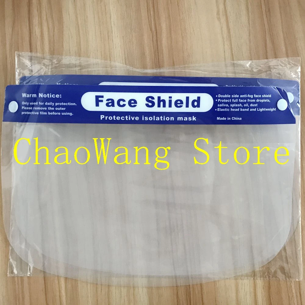 1. Материал: пластик 2. Размер: 32*22 см Предупредить Обратите внимание: Используется только для ежедневной защиты Перед использованием снимите внешнюю защитную пленку Двухсторонний Анти-туман лицевой щит Защита всего лица от брызг, масла, пыли и тумана. Эластичная Повязка на голову и легкий вес.
