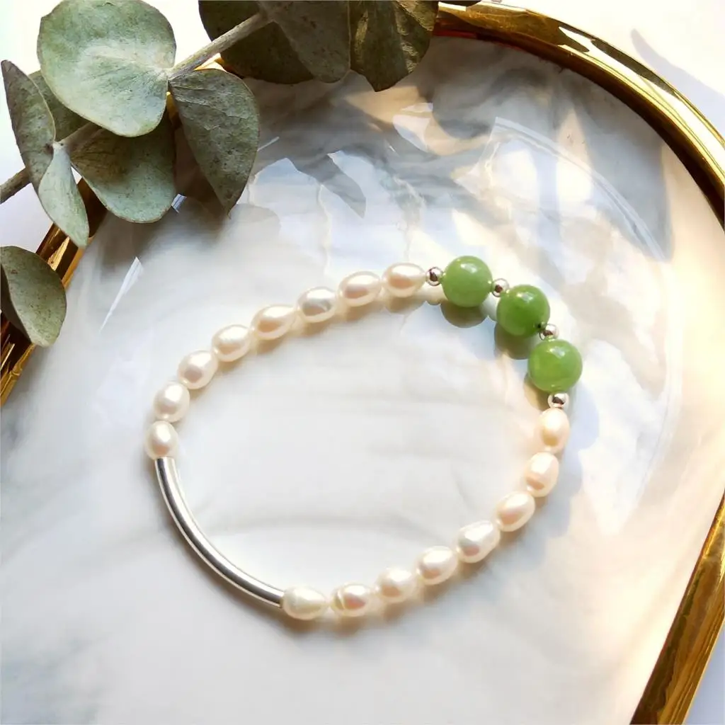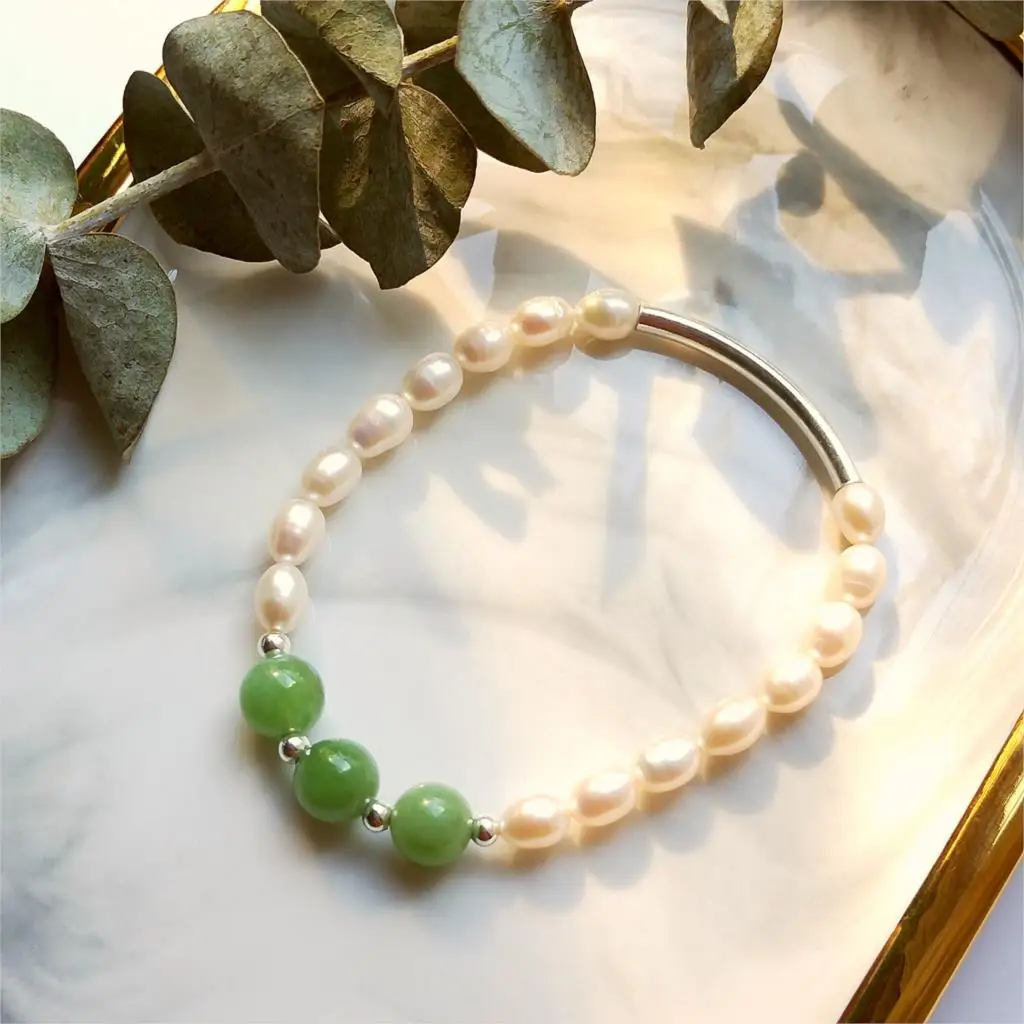 Натуральный натуральный 8 мм зеленый нефрит с белым рисовым пресноводным жемчугом 5-6 мм 925 пробы серебряный браслет Это браслет «Сила исцеления» для женщин и мужчин. Подарок на Новый год, День матери, День Святого Валентина, День отца, пасху, Рождество, подарок на день рождения.