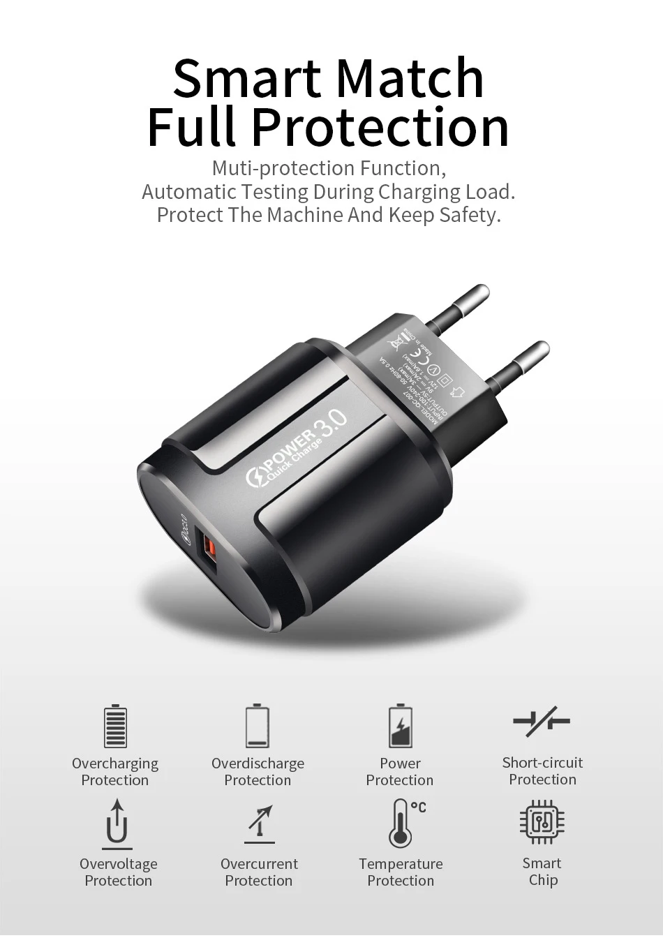 Быстрое зарядное устройство LOVECOM 3,0 USB, зарядное устройство для быстрой зарядки, Европейский, американский настенный мобильный телефон, зарядное устройство, адаптер для iPhone 11 Pro Max для Samsung