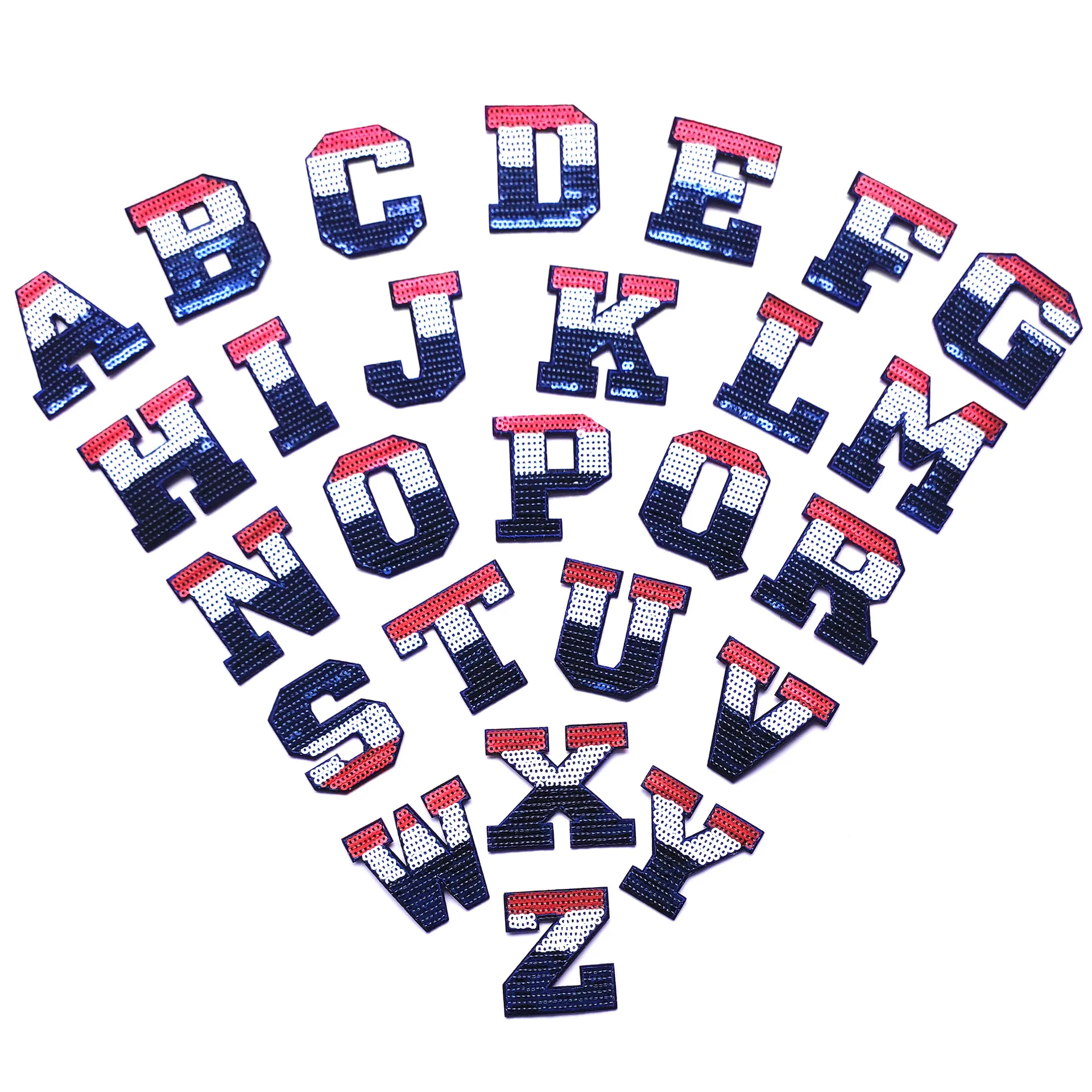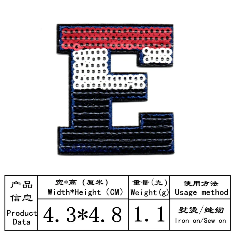 Sequins English Alphabet Letter Embroidery Patches DIY hot Melt Adhesive Sew On Brand Cloth Accessories stickers name patches