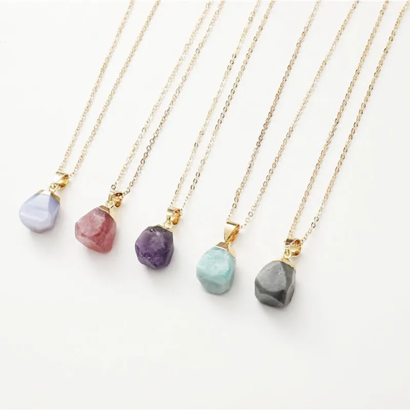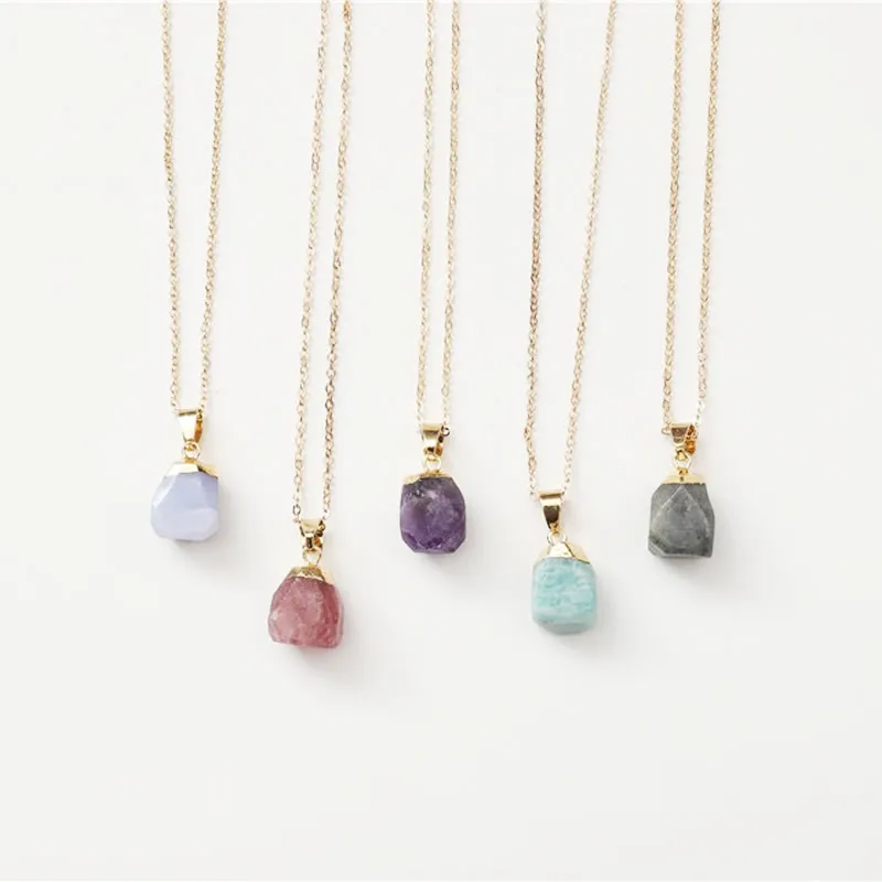 Title:Reiki Healing Mineral Raw Nuggets Natural Quartz Pendant Necklaces Small Rose Crystal Labradorite Prehnite Amethysts Necklaces
