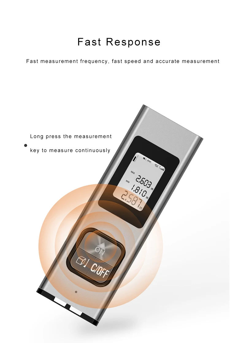 Частота измерения высокая, скорость быстрая. Удерживайте клавишу измерения для непрерывного измерения.