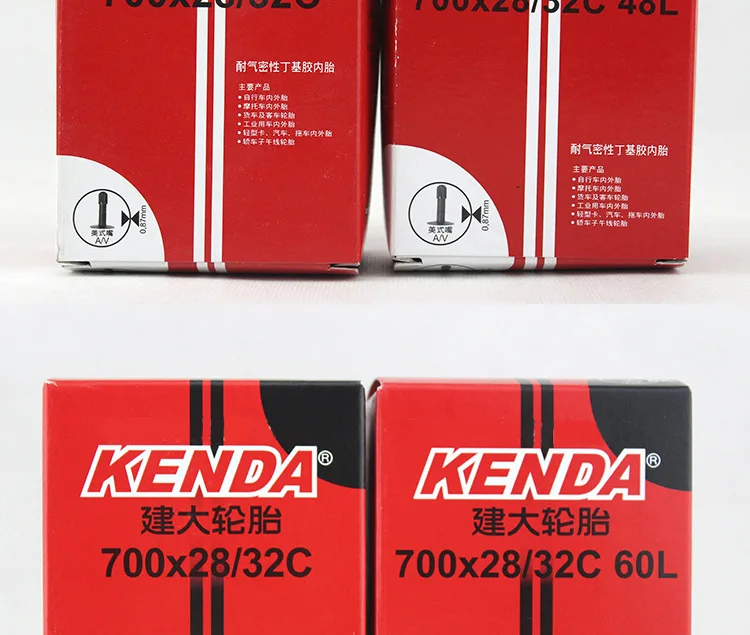Brand: KENDA / Jianda model: 26 inch inner tube beauty mouth / French mouth 700C inner tube beauty mouth / French mouth 27.5 inch inner tube 29-inch inner tube 20 inch inner tube beauty mouth / French mouth Inner tube under 20 inches Air nozzle length: 32mm 48mm 60mm 80mm Material: high quality butyl rubber Weight: about 168-220g (each one is different) Wall thickness: 0.87mm