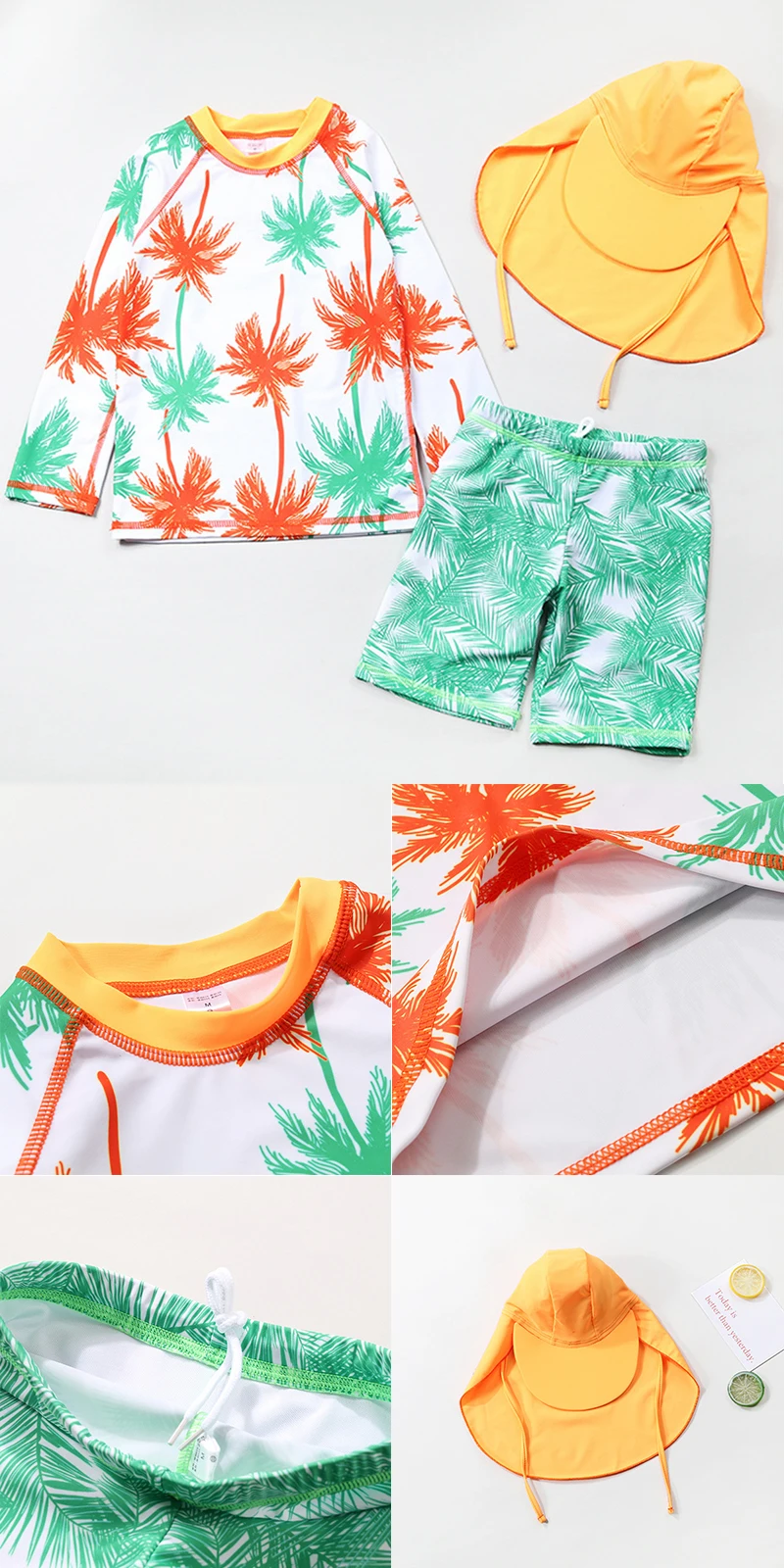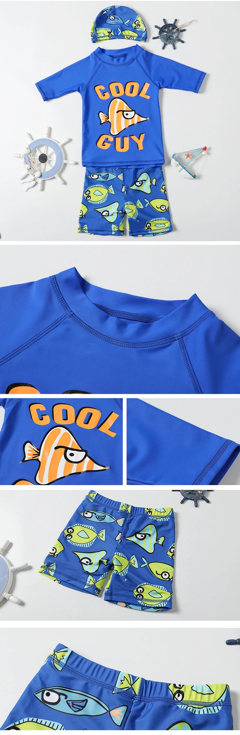 С UPF 50 + защита от солнца с мультяшным принтом, этот набор Рашгард держит его милым и защищенным весь день.