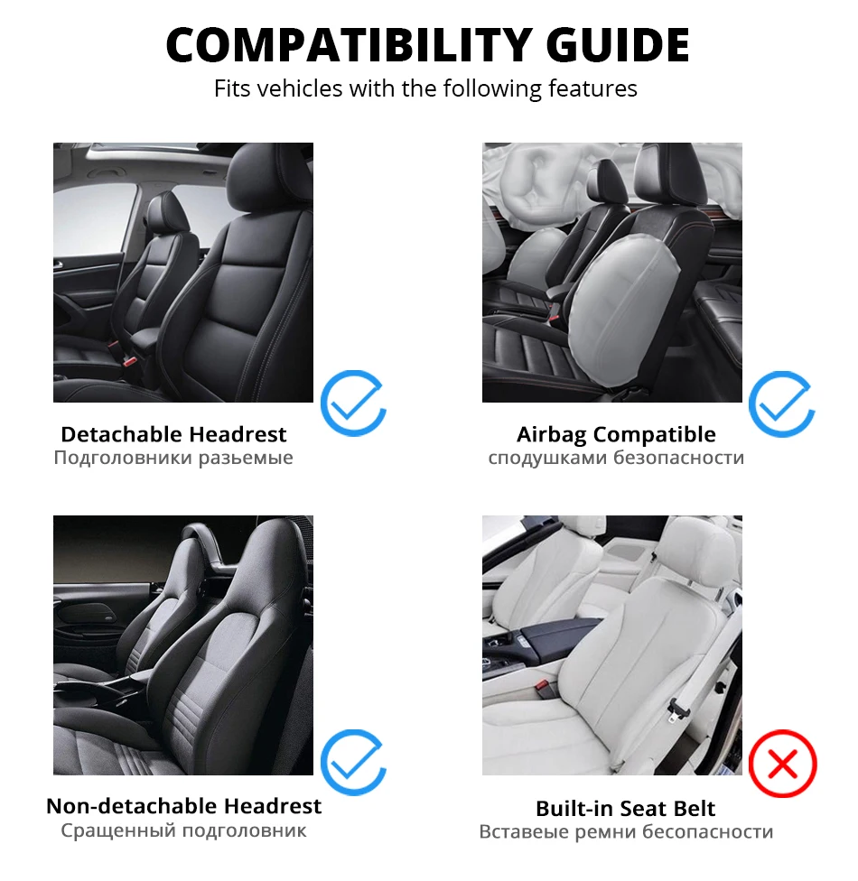 Подходит для несъемных подголовников и съемного подголовника