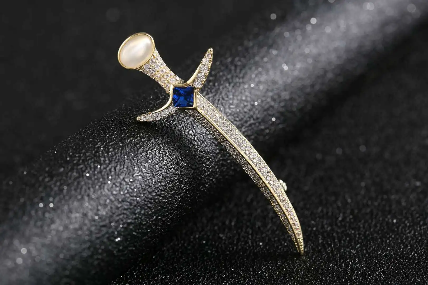 Korean fashion high-quality zircon metal post dagger plug-in paper clip brooch ladies men's collar pin accessories