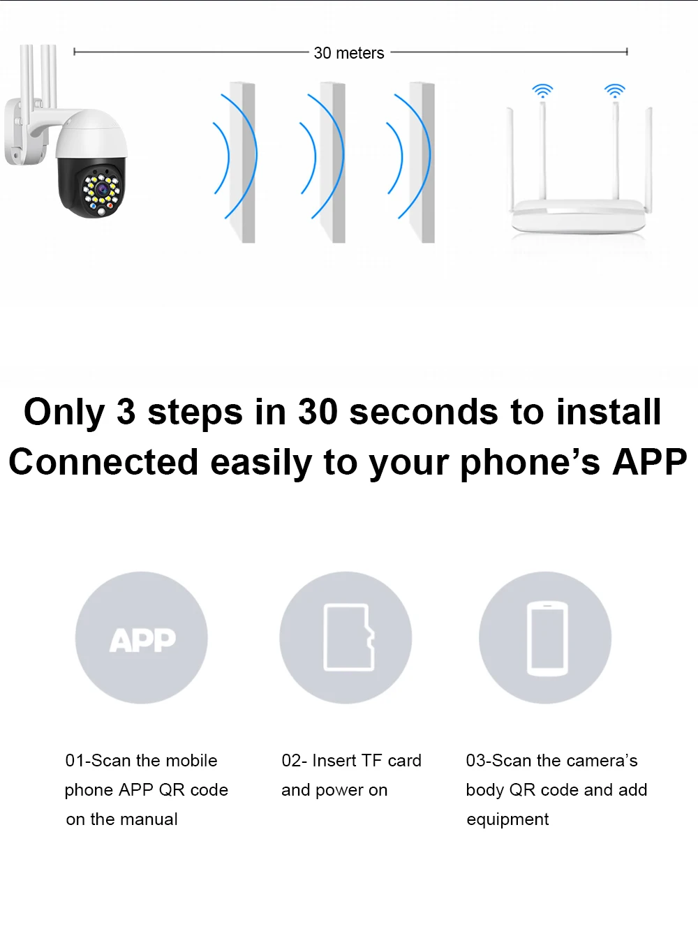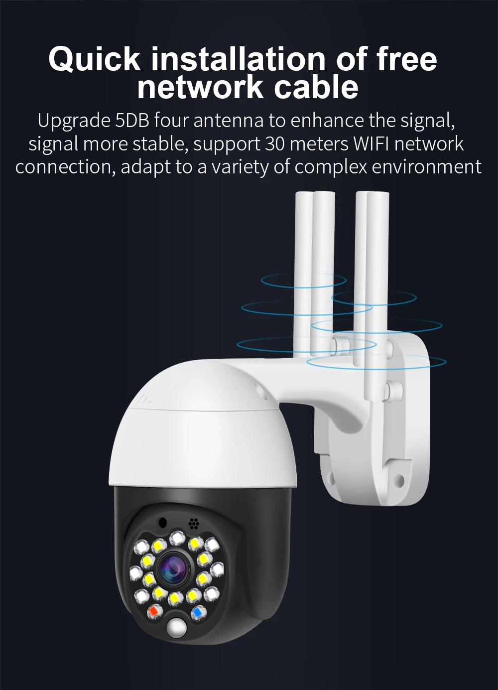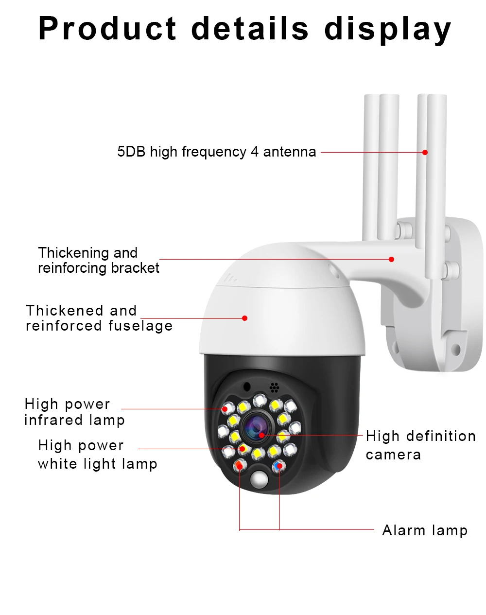 1. Красный синий светильник 2. Умный двойной светильник 3. Панорамирование 320 ° Наклон 90 ° пульт дистанционного управления 4. 5.0X цифровой зум 5. Водонепроницаемый IP66 6. Двусторонний разговор аудио 7. Сигнализация обнаружения движения 8. Несколько способов подключения (Wifi и Проводная сеть и режим AP) 9. Tf-карта и Облачное хранилище 10. P2P удаленный мониторинг Другое Особенности: Поддержка 30-50 м цветного/черного белого ночного видения Поддержка протокола Onvif, добавление через подключение по локальной сети Просмотр с ситемой удаленной поддержки через приложение YCC365 Plus на смартфоне Вид ангела: 100-110 °, фиксированный объектив: 4 мм
