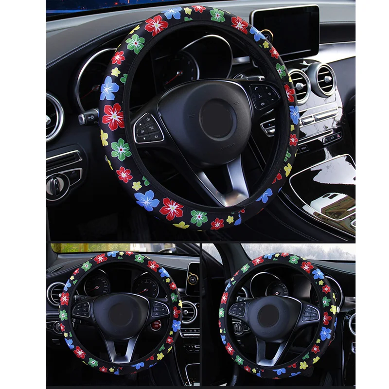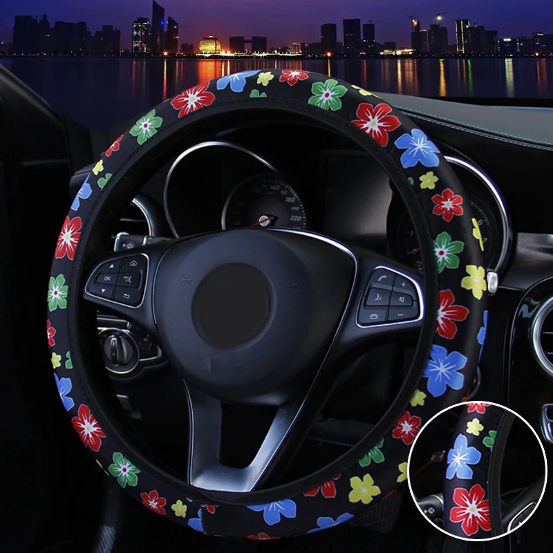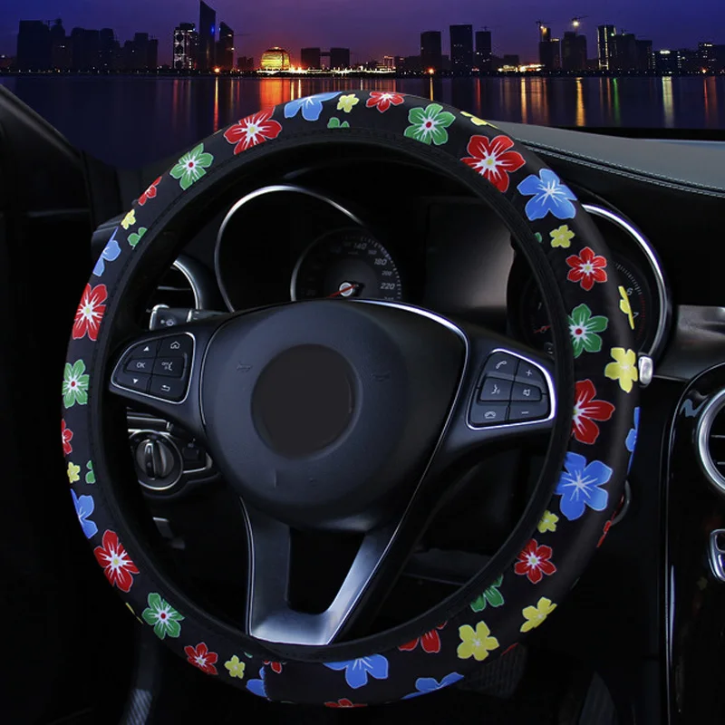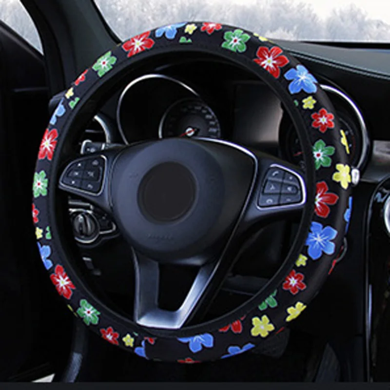 * 38 см автомобильный чехол на руль, с милым цветочным принтом, цветной, эластичный, без внутреннего кольца