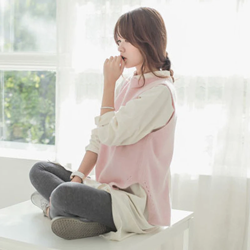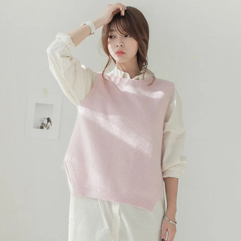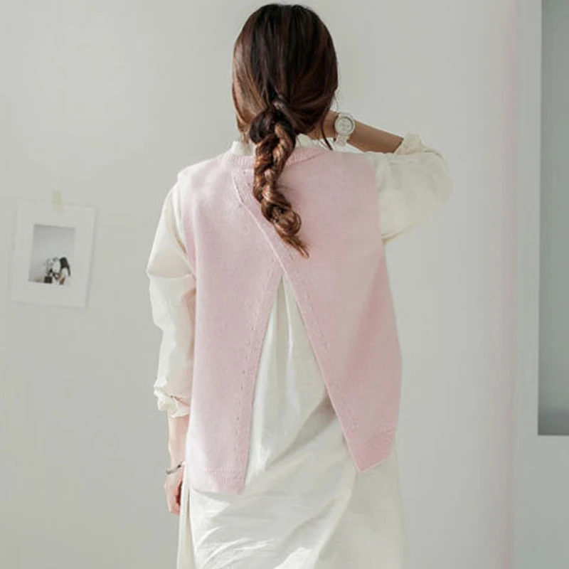 Осенний женский Простой Длинный жилет свитер Повседневный Без Рукавов пуловер
