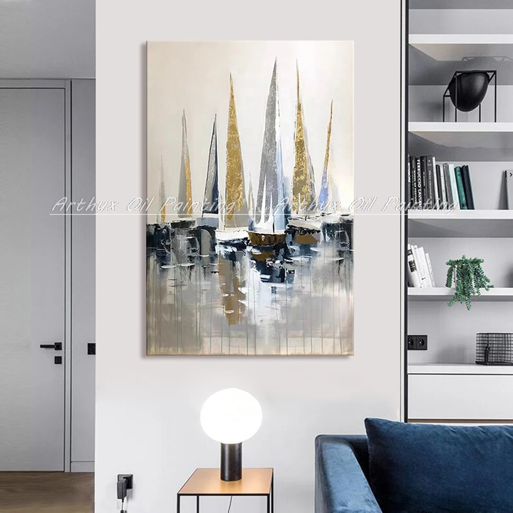 Описание товара:Arthyx абстрактная парусная лодка художественная картина маслом Ручная роспись Морская Лодка Холст Настенная картина поп-арт Декор художественное оформление для декора комнаты.