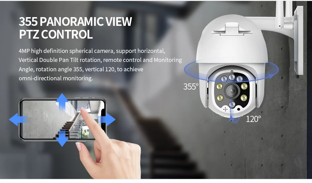 Pan 355 ° наклон 120 ° пульт дистанционного управления, вы можете управлять углом поворота через приложение.