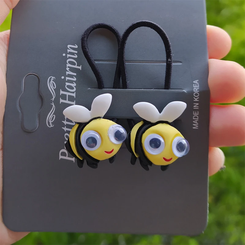 2 шт., новый милый головной убор принцессы с мультяшным глазом пандой и Пчелой, Детские эластичные повязки для волос, Детские веревки, аксессуары для девочек, детский головной убор