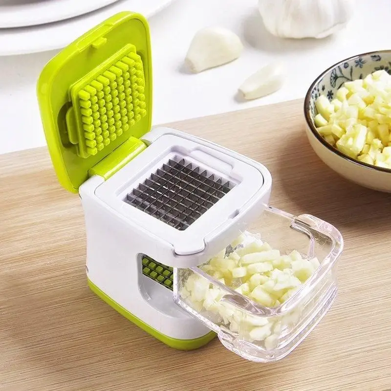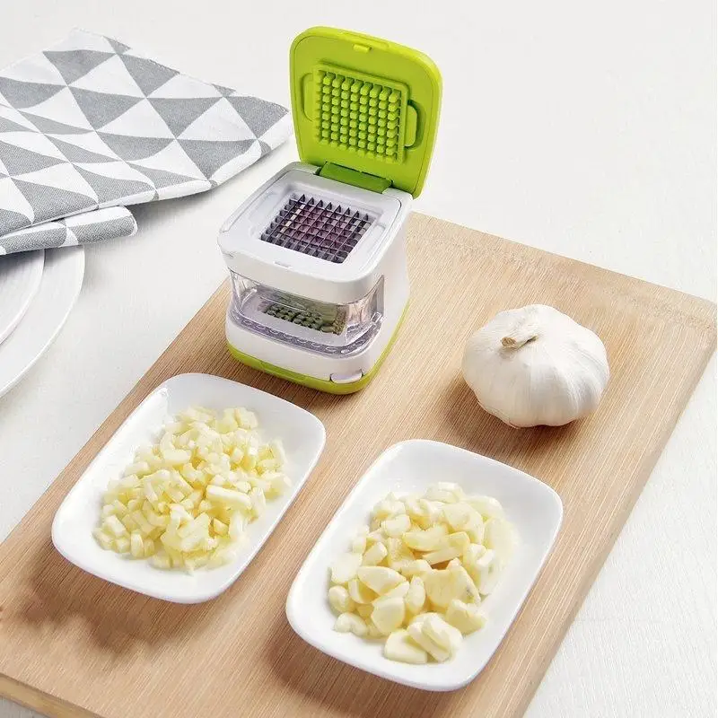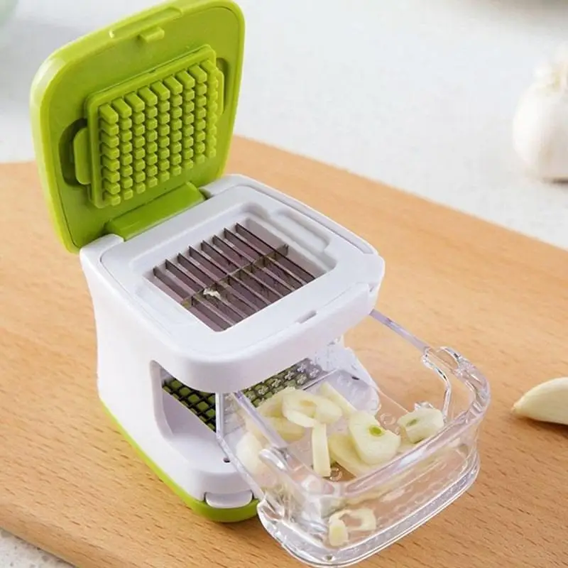3.Это не только чеснока можно нарезать с помощью этого удобного Маленький гаджет, но все другие виды мягкой овощей и фруктов, таких как бананы, киви, лук и перец.
