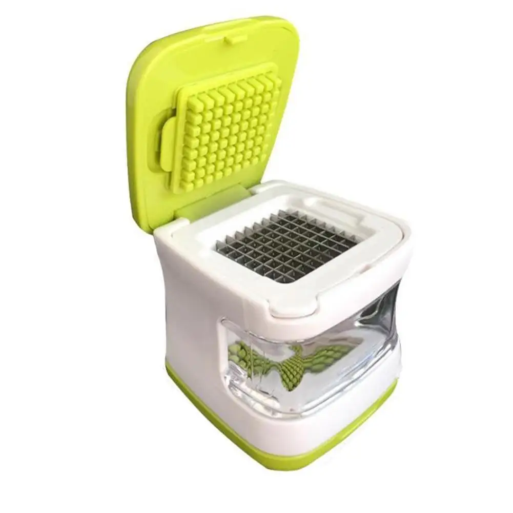 2. Два лезвия из нержавеющей стали позволяют выбирать между ломтиками или кубиками в маленькие кубики, встроенная Терка на контейнере позволяет также измельчать чеснок.