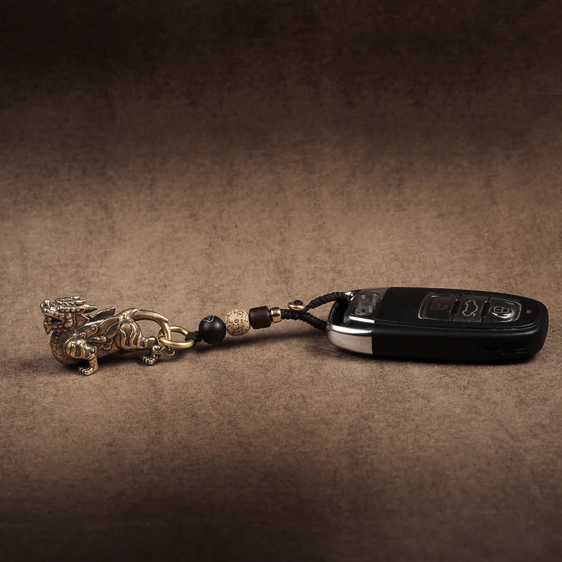 Чистое медное автомобильное кольцо для ключей Подвески мифический китайский зверь Lucky Pi Xiu статуэтки винтажные веревочные брелоки