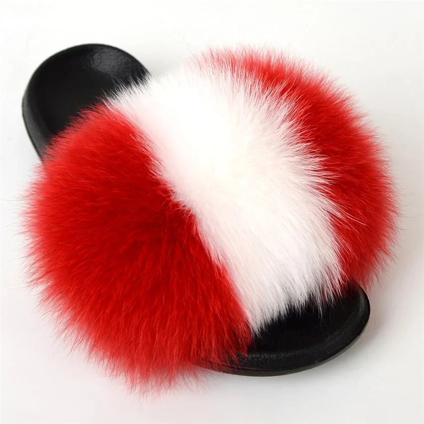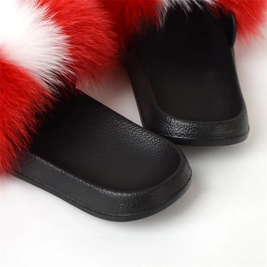 Тапочки из 100% натурального Лисьего меха; Женские шлепанцы на меху радужной расцветки; Милые меховые Вьетнамки; Женская обувь на меху для путешествий; Комплект из прозрачной сумки; Модная сумка