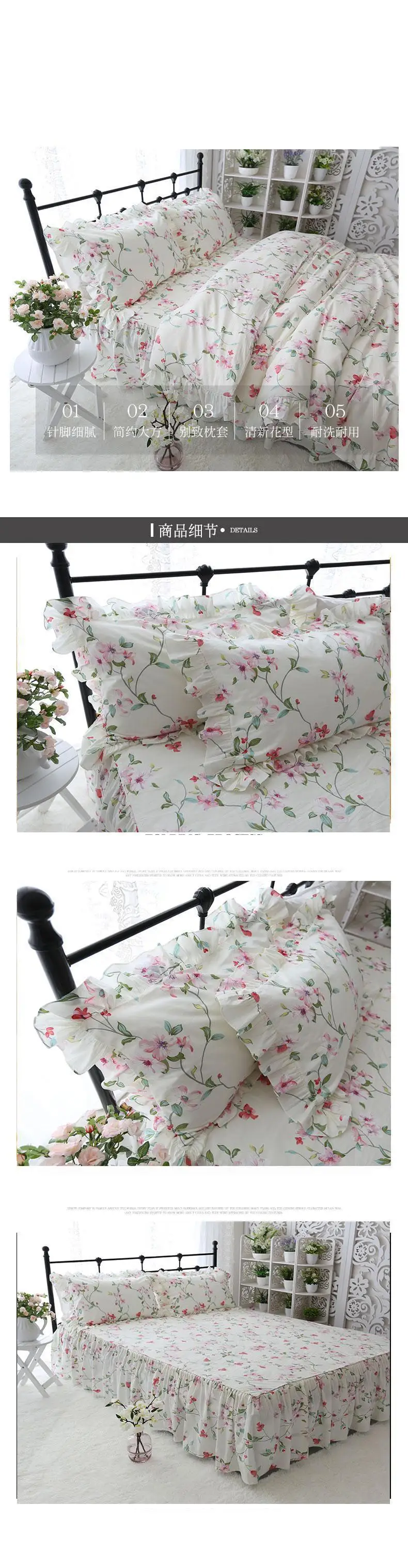 1 пододеяльник: 160*210 см (63*83 дюйма) 1 шт., юбка для кровати: 120*200 + 45 см (47*79 + 17 дюймов) 1 шт. наволочки: 48*74 см (19*30 дюймов)1,5 м Queen Размер 4 предмета в комплекте