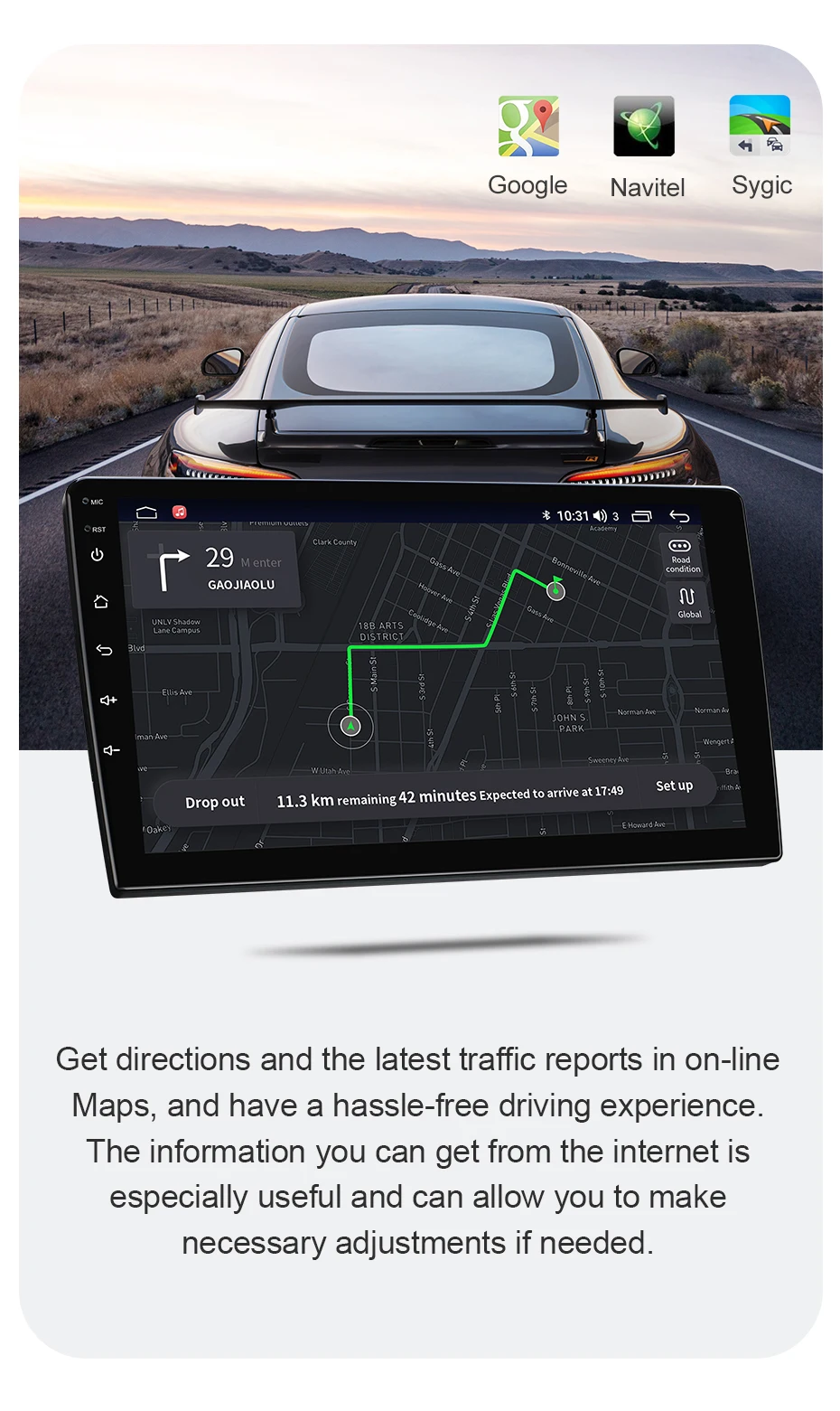 Поддерживает онлайн-карты, карты Google, Яндекс, Waze… Поддерживайте дорожные условия в режиме реального времени при подключении к Интернету. GPS-антенна входит в комплект.