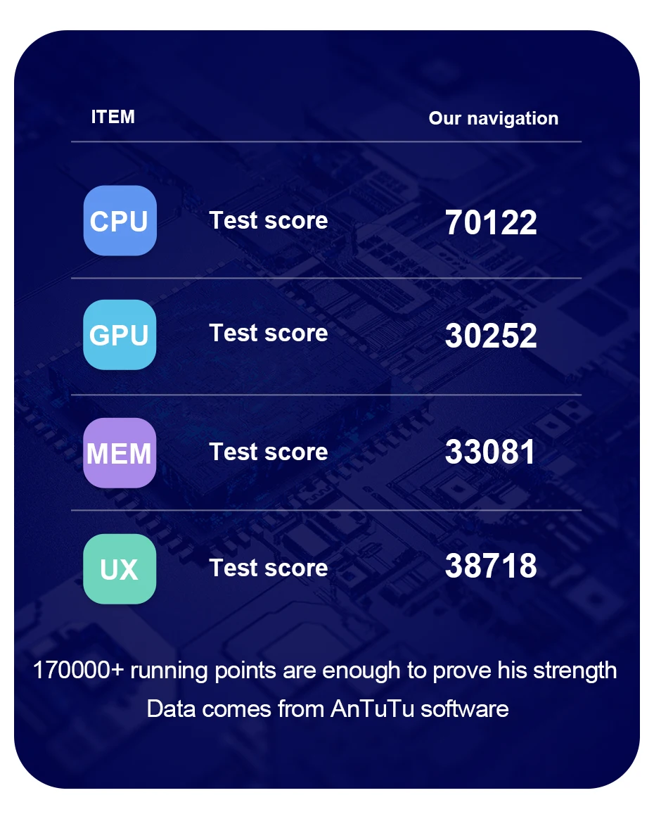 Восьмиядерный процессор UIS7862 открывает возможности автомобильной сети и интеллектуальных обновлений, обеспечивая пользователям безопасную и увлекательную интеллектуальную жизнь вождения. Высокая производительность: благодаря 12-нм техпроцессу, встроенному восьмиъядерному процессору и графическому процессору ARM Mali G52 по сравнению с другими процессорами мощность процессора увеличена на 89%, мощность обработки графического процессора увеличена в 3,4 раза.