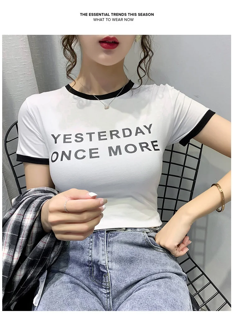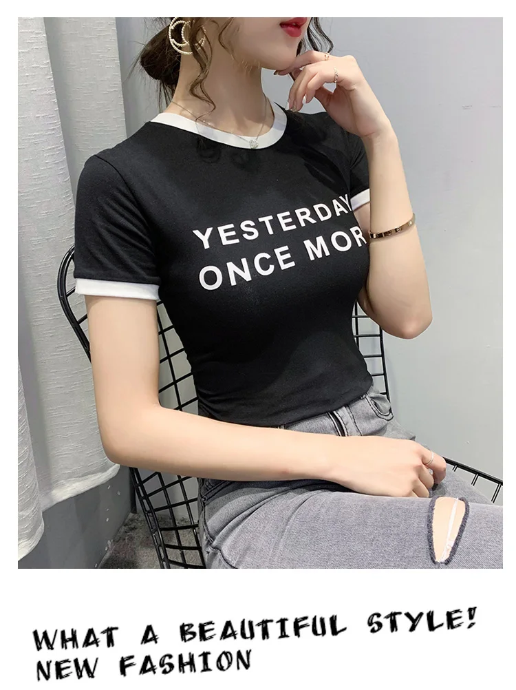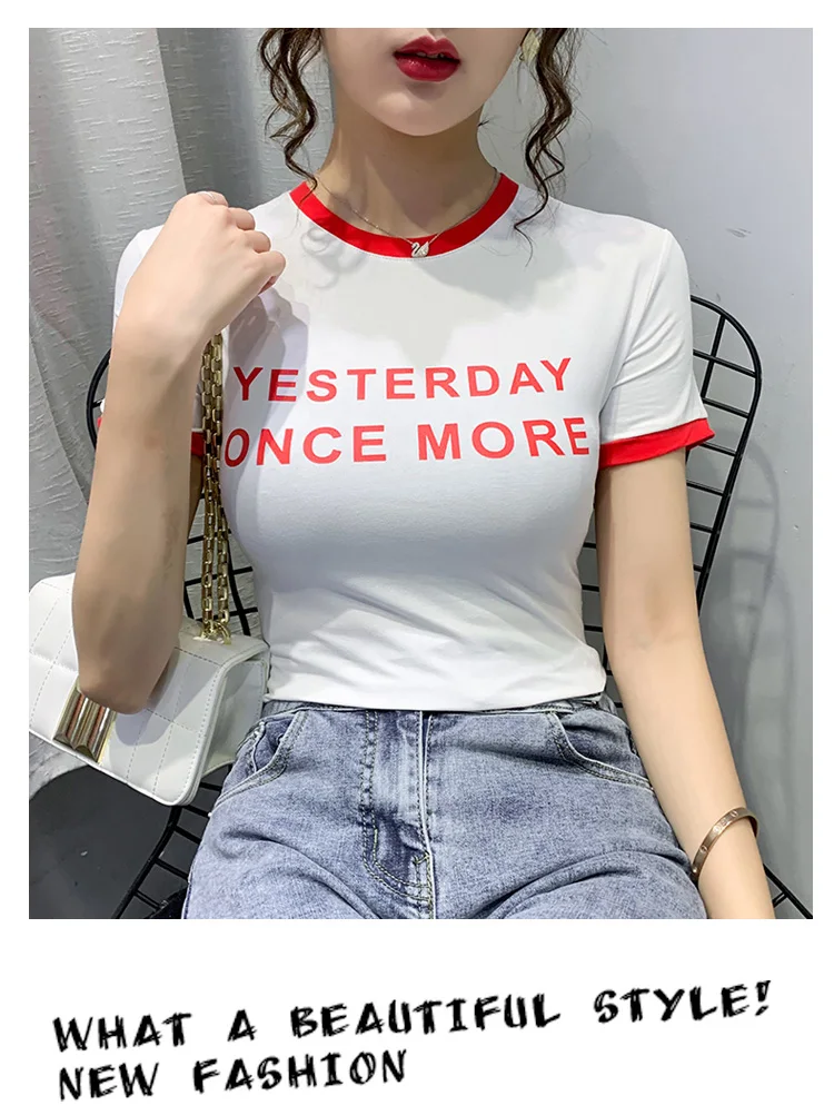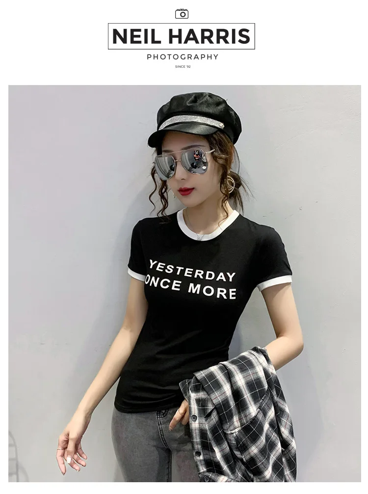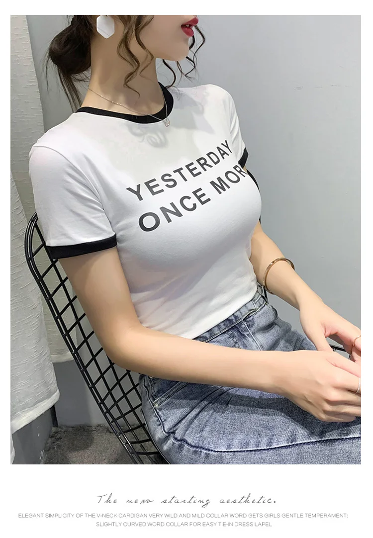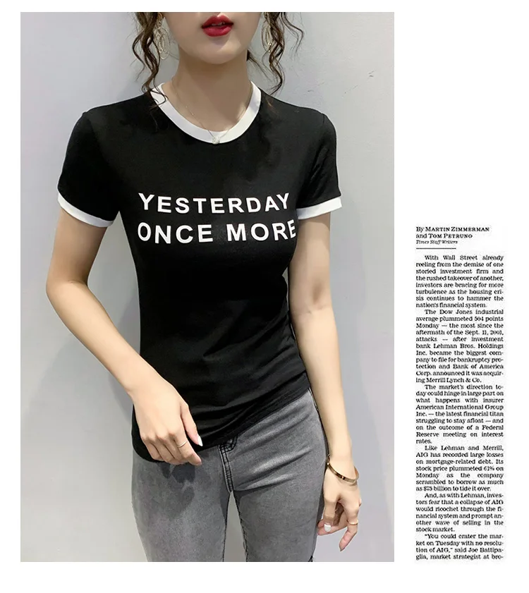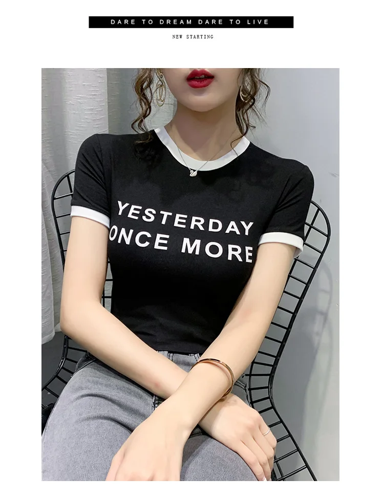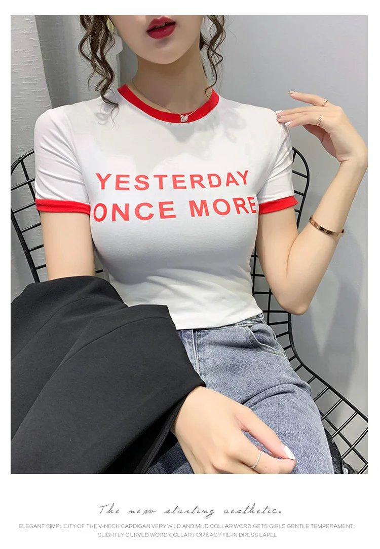 Личи повседневное Цвет блок круглый вырез горловины женские футболки
