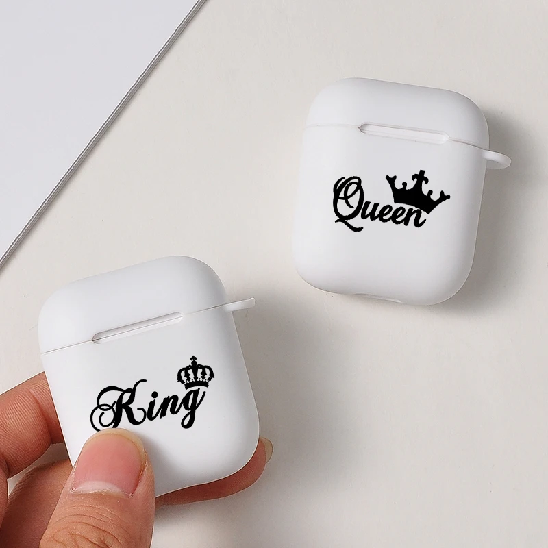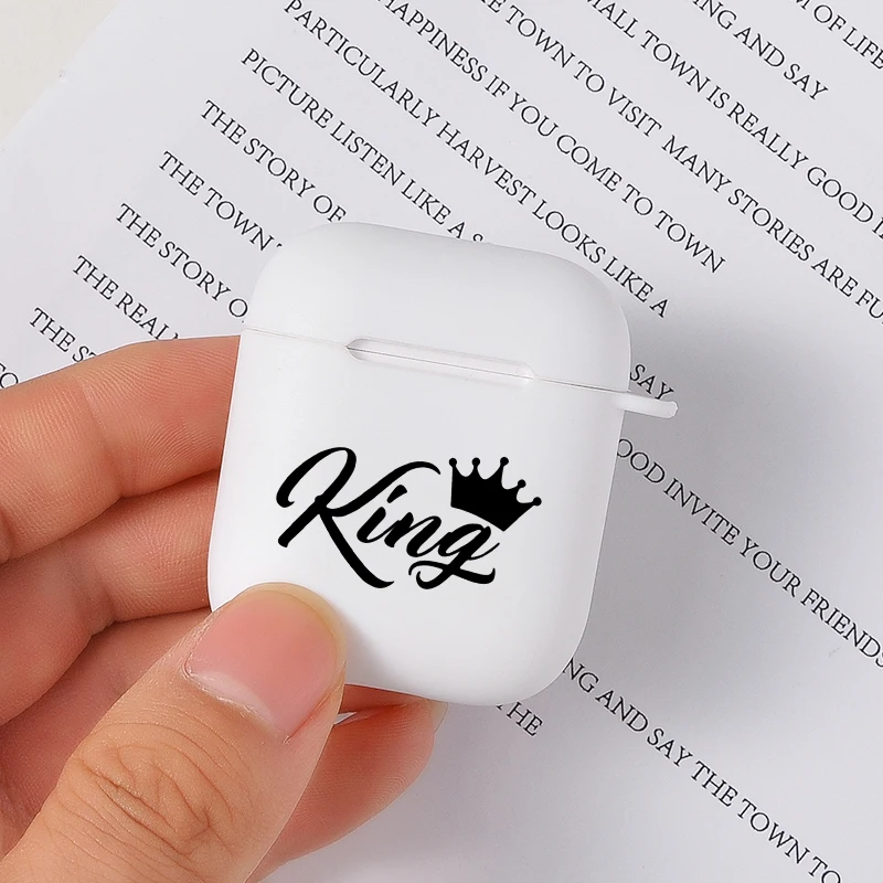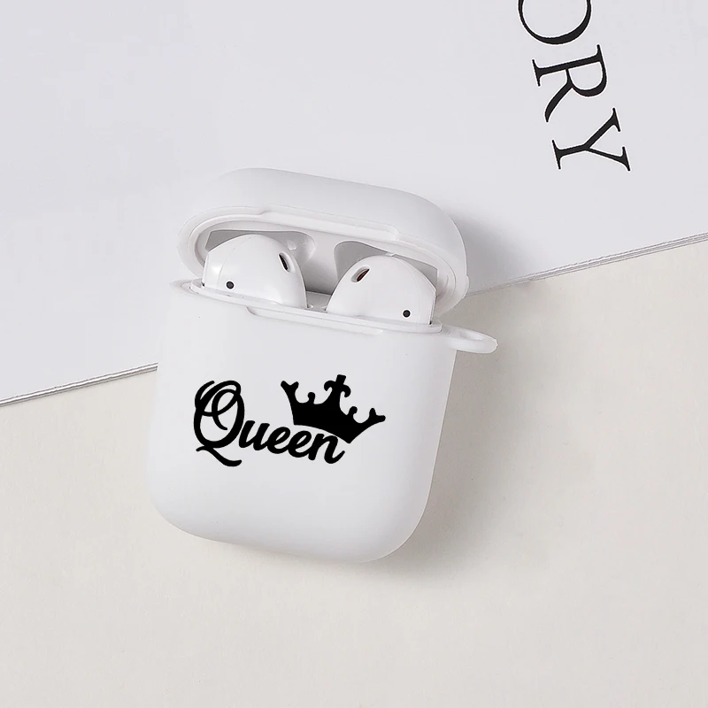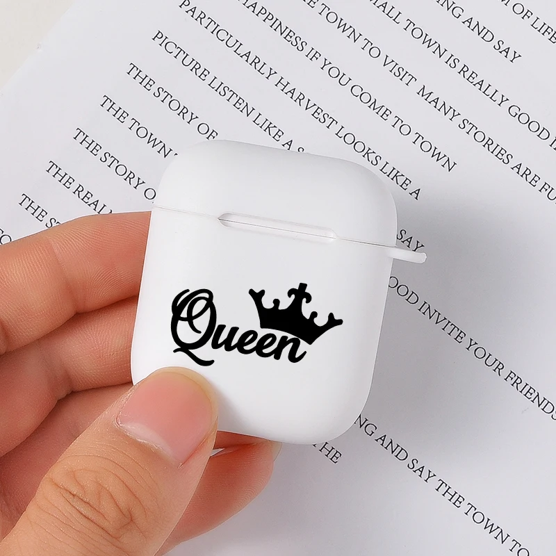 Чехол с принтом "король и королева" для AirPods Чехол Белый Bluetooth Обложка для Apple AirPods 1 2 зарядным устройством кожного покрова аксессуары воздуха стручки чехол