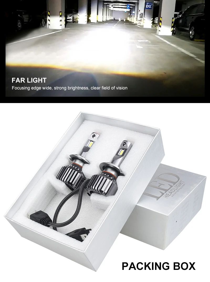 Детали 1. Мощность: 70 Вт/пара 2. Напряжение: 12-24 В постоянного тока 3. Светодиодный чип: CSP 4 Люмен: 7600 люмен на лампу 5. Цветовая температура: 6000k 6. Разъем: H1 H4 H7 H8 H11 9007 9005 9006 9004 9007 H13 9012 7 .. Срок службы: >30000 часов 8. Класс водонепроницаемости: IP68 9. Применение: Автомобильная фара/противотуманная фара 10. Тепловыделение: алюминиевый радиатор + высокоскоростной тихий вентилятор