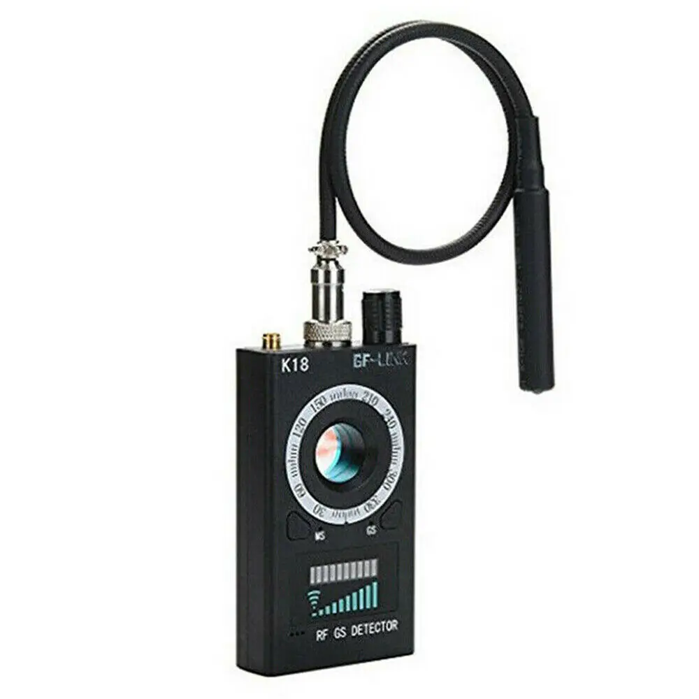 Анти-шпионская Скрытая камера детектор радиочастот сигнал Ошибка GPS GMS Finder трекер сканер локатор защита безопасности Особенности: 100% новый товар высокого качества. Компактный размер и легкий, прост в использовании. Может обнаруживать радиоволну, магнитное поле, скрытую проводную или беспроводную камеру и т. д. Звуковой индикатор и светильник, точный и надежный. Профессиональное устройство обнаружения, высокая чувствительность и большой диапазон частот. Характеристики: Материал: пластик Цвет: черный Размер: 117*56*20 мм Длина антенны: около 8 см Тип батареи: 3,7 V 400mAh Вход: 5 В-6 В постоянного тока Частотный диапазон: 1 МГц-8000 МГц Беспроводной Дальность обнаружения: 1 МГц до 6,5 ГГц
