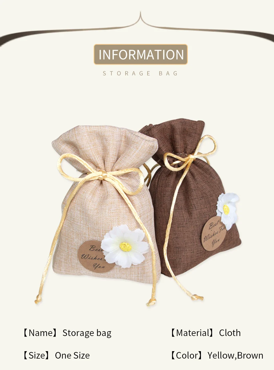【Описание 】 Название продукта: сумка для хранения в искусственном стиле Материал: ткань, приятная на ощупь Размер: около 9,5*14 см Использование: подарочная упаковка, пакеты для упаковки ювелирных изделий, свадебвечерние, праздничные украшения, подарочные пакеты, пакеты-саше Подходит для Пол: мужчин и женщин Тип упаковки ювелирных изделий: сумка для хранения, мешочек Узор: подсолнух Посылка включено: 1 х тканевый мешок для хранения ювелирных изделий и подарков 【Характеристики 】 1. Популярный вариант упаковки для вечеринок 2. Портативный дизайн, удобный для переноски 3. Просто потяните за шнурок, чтобы закрепить 4. Портативный дизайн, удобный для переноски 5. Карман на шнурке для легкого доступа 6. Украшение из подсолнуха, простое и художественное [Примечание] 1. Возможны незначительные различия из-за ручного измерения. 2. Напоминаем, что из-за световых эффектов, настроек яркости/контрастности монитора и т. д. цвет фотографии на веб-сайте и самого товара может немного отличаться. 3. У нас есть 9,5*14 см, коричневый и желтый цвета в наличии, вы можете выбрать размер. 4. Сумки сделаны вручную, поэтому небольшая разница в размере не может контролировать. Мы надеемся на ваше понимание!