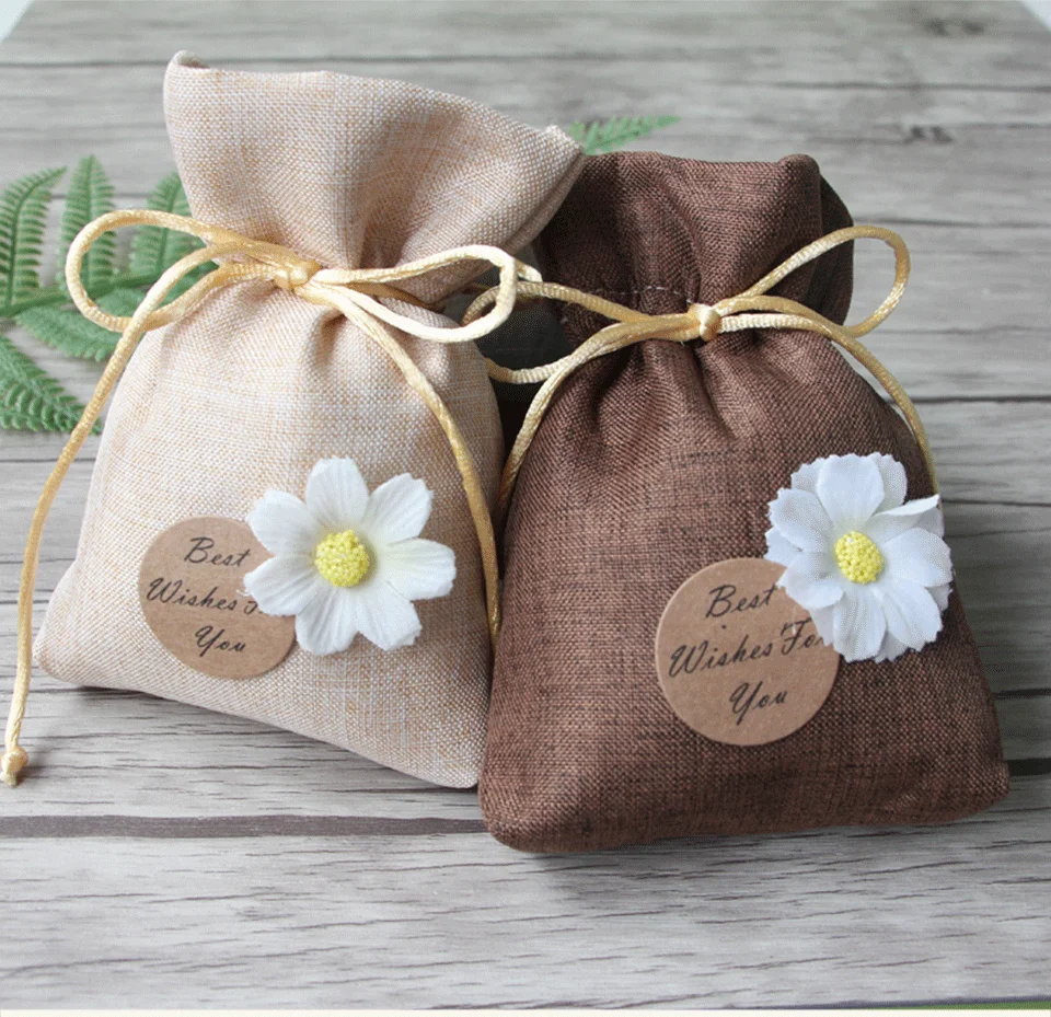 Портативный мешок для хранения, сумка из мешковины, изящные стильные джутовые пакеты, конфеты, закуски, сумка для хранения, ювелирные изделия, дисплей, узор подсолнуха, упаковочные пакеты