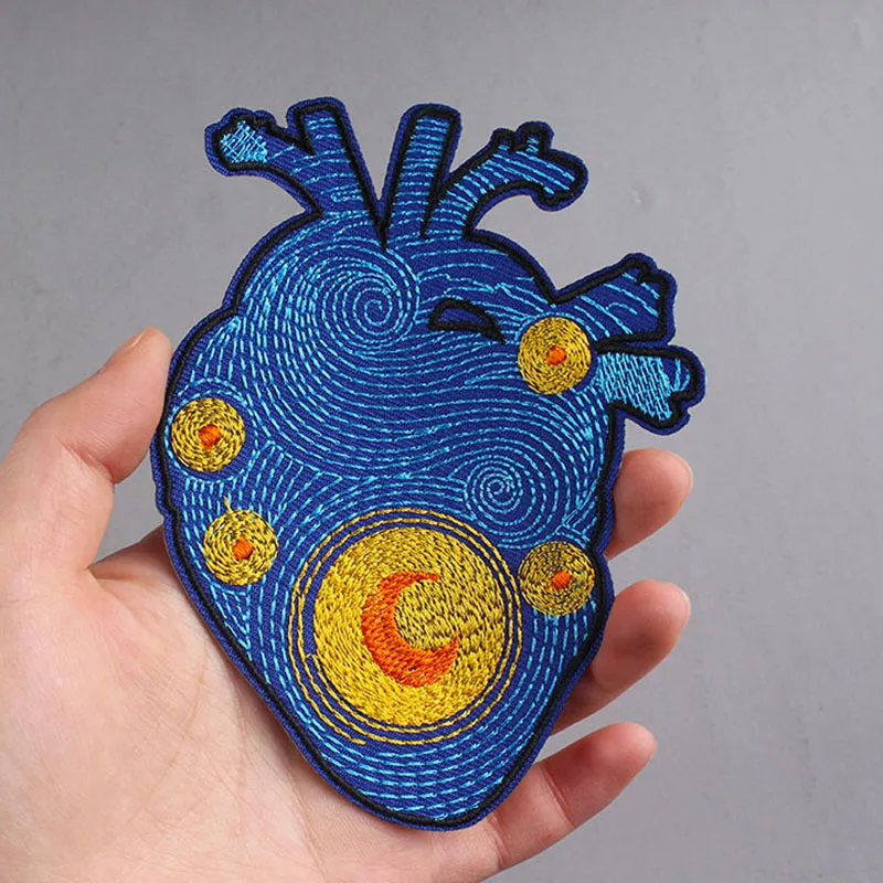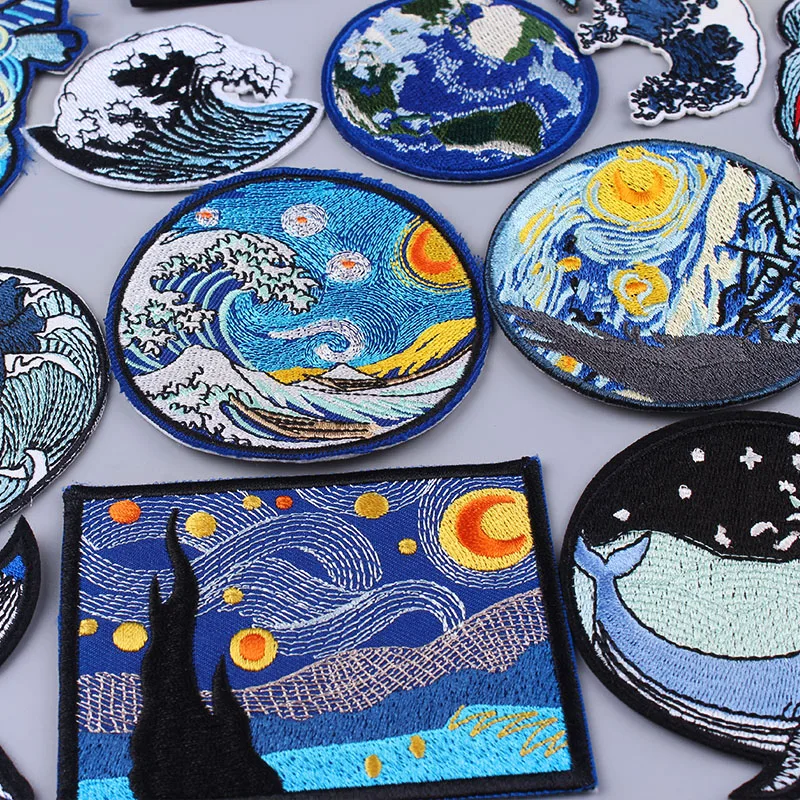 Pulaqi Wave Applique Adventure Badges Iron On Patches For Clothing Van Gogh Embroidered For Clothing Natural Patches On Clothes