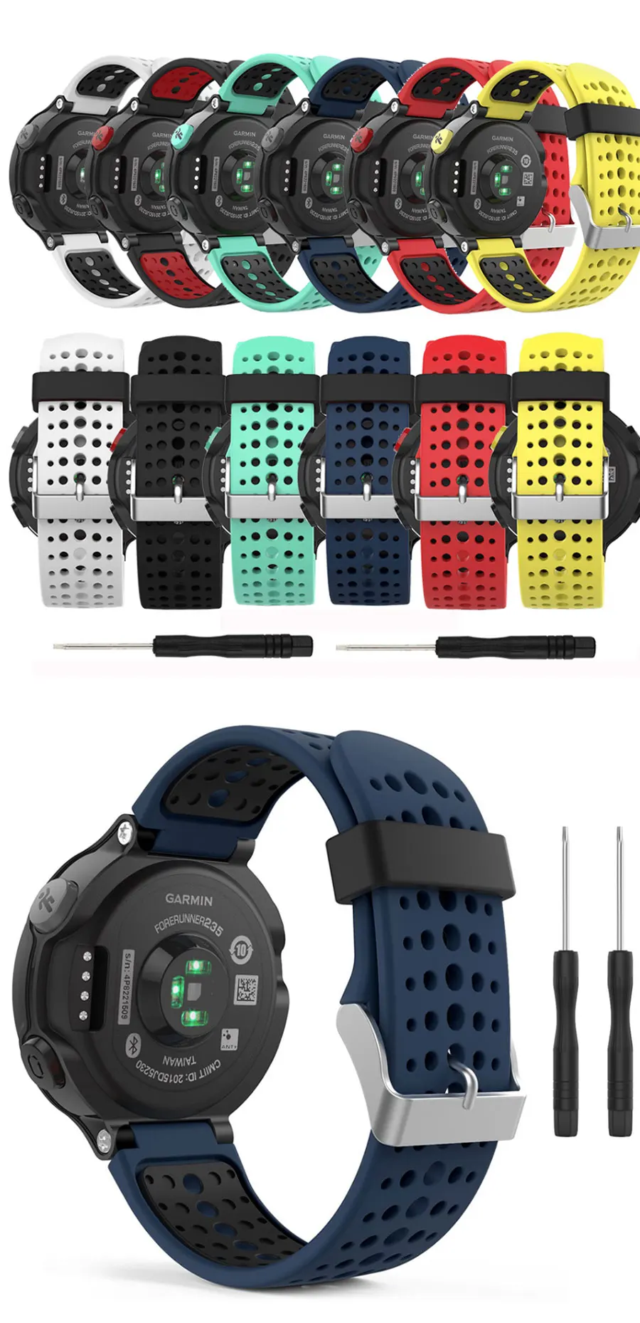 Особенности:100% новый товар высокого качества.1. Ремешок для наручных часовДля Garmin Forerunner 220/230/235/620/630/735XT/235Lite