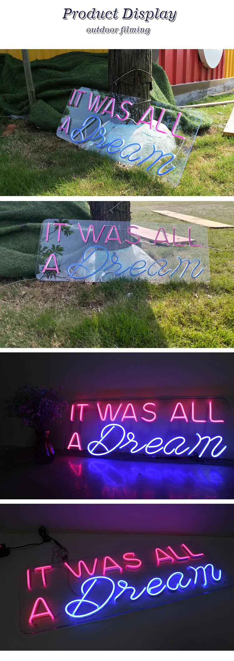 1. Акрил: обладает хорошей прочностью, светильник весом, долговечностью, не легко повредить, прозрачные материалы делают неоновый светильник s более красивым