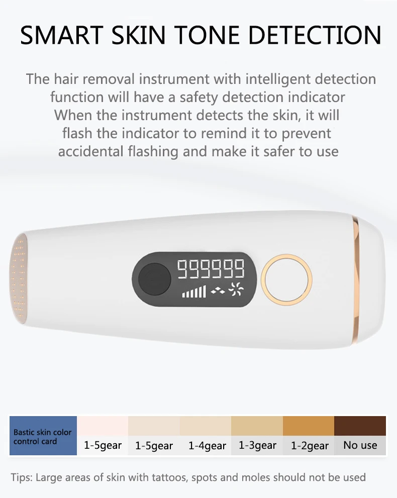 1. Применимо: Рабочее напряжение 110 ~ 240 В, подходит для всех стран мира. 2. Больше времени вспышки: 999999 вспышек для более длительного использования 3. ЖК-дисплей: предоставление четкой информации о рабочих режимах, остальных вспышках и уровнях мощности 4. Два режима работы: автоматический и ручной режимы для различных областей кожи 5. Безболезненный: пять регулируемых оптимальных уровней энергии в зависимости от толерантности кожи. Обеспечивает нежное лечение безболезненно и легко, не повреждая кожу. 6. Быстрая и подходящая область обработки: 3 квадратных см размер пятна не слишком большой или не слишком маленький для любого изгиба тела, высокая эффективность и быстрая скорость, которая занимает всего несколько минут, чтобы удалить перекрещивающиеся волосы, которые трудно для традиционного метода удаления волос 7. Возможность обнаружения кожи: цифры на ЖК-дисплее мигают, когда устройство готово к работе 8. Постоянный: IPL работает внутри пор, разрушает волосы papilla, таким образом, обеспечивает постоянное удаление волос 9. Длительный срок службы: кварцевая лампа для удаления волос с более длительным сроком службы и долговечным использованием 10. Нулевые расходные материалы, без средних, без расходных материалов 11. Безопасность: не влияет на нормальное выделение пота и кожного сала 12. Удобно: меньший размер для портативного дизайна и легко брать