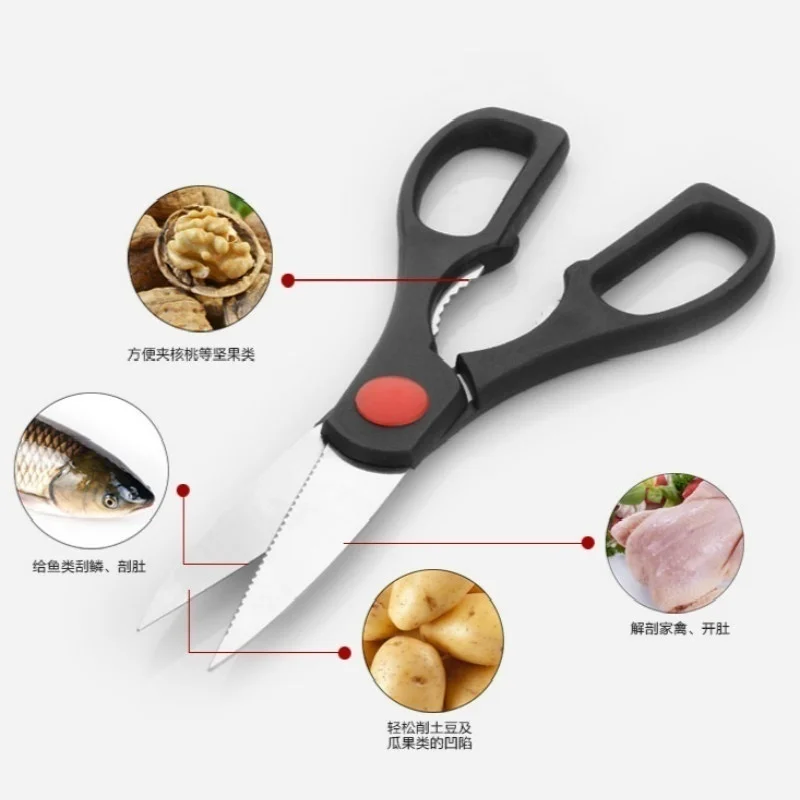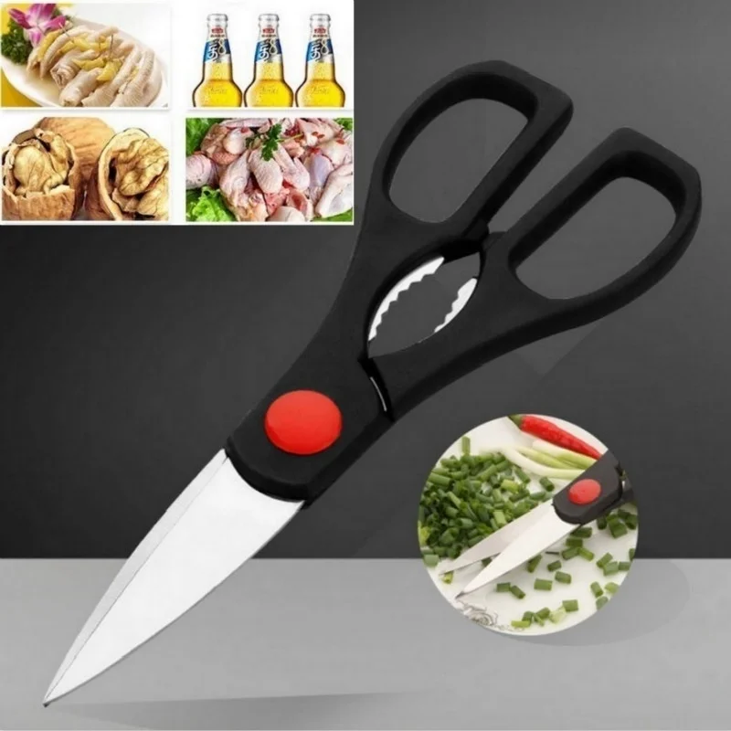 Особенности: 1. Тип товара: открывалка для бутылок из грецкого ореха, крепкие ножницы для куриных костей 2. Материал: нержавеющая сталь 3. Цвет: черный 4. Размеры: 16,5/19,5 см 5. Вес: 50 г 6. Посылка включает в себя: 1 * ножницы 7. Упаковка: opp мешки