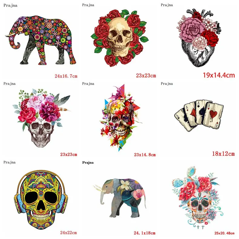 Prajna череп патчи железо на переноске слон теплопередача нашивка в стиле панк для одежды термопередача Горячие виниловые железные наклейки MOQ:1 шт. Размер: как показано на картинке