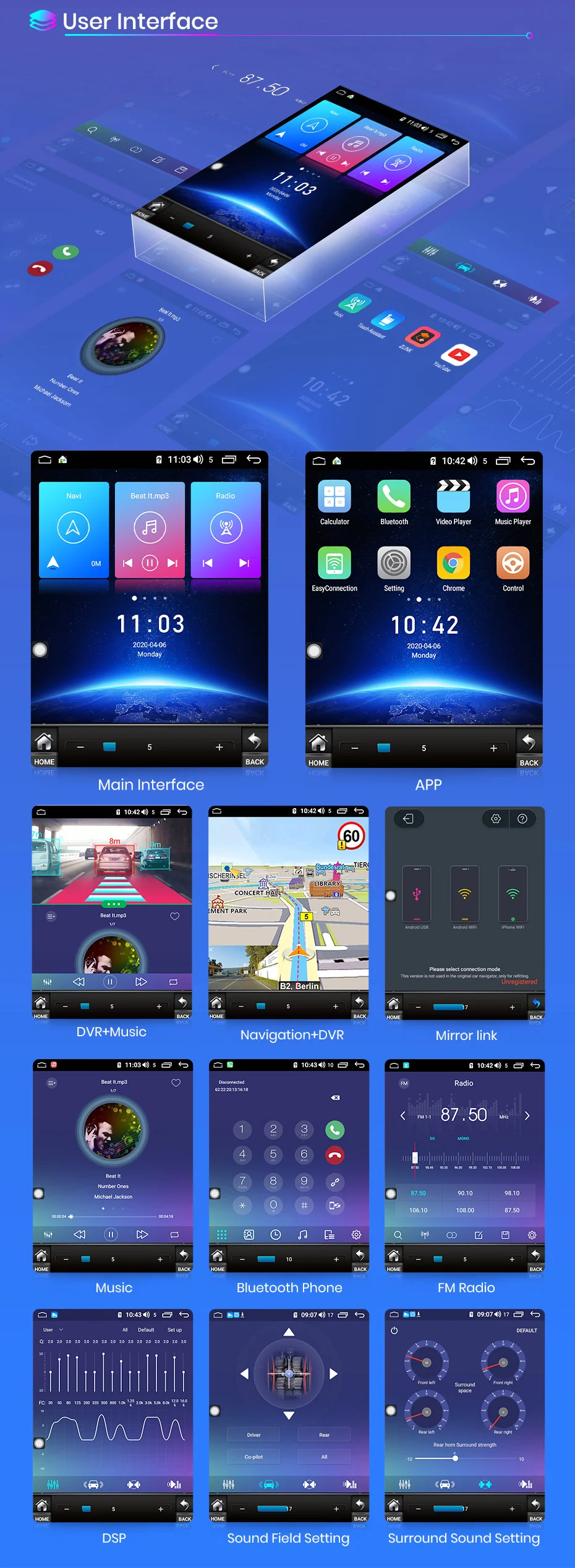 Этот DVD-диск содержит разъем USB, который поддерживает подключение к вашему телефону, прост в управлении и управлении телефоном через устройство; В системе он называется ZLINK; (поддерживается только версия 4GB + 64GB)