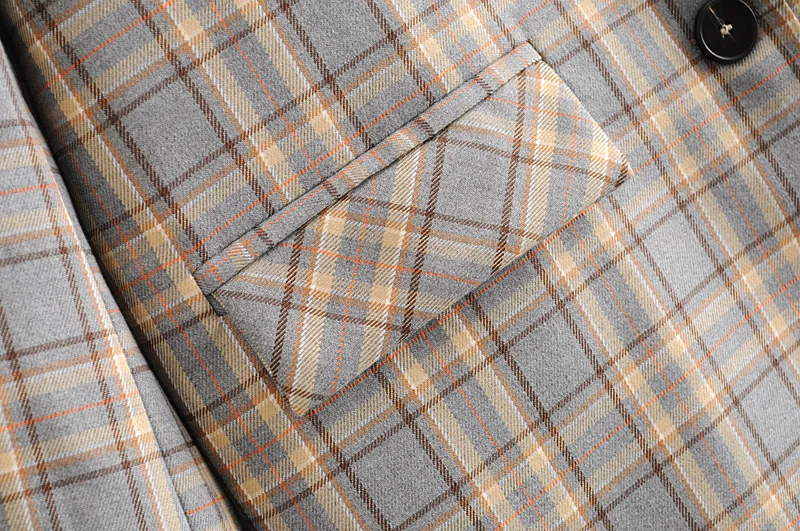 Женские клетчатые элегантные костюмы с блейзером 2020, винтажный женский пиджак с английским воротником, повседневный женский костюм blazers с карманами для девушек шикарное пальто