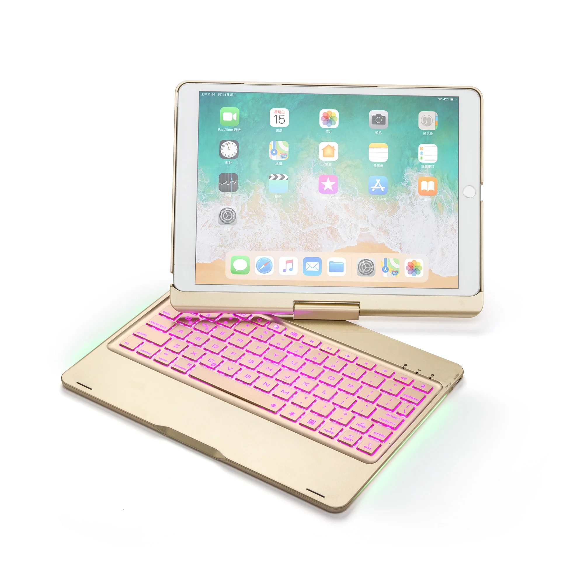 Материал изделия: алюминиевый сплав, пластиковая коробка из АБС-пластика, поверхность клавиатуры, обработка поверхности пианино, удобные ABS ножницы, кнопки для ног Система поддержки: Поддержка IOS, подходит для iPad pro10.5 планшетный ПК Продукт отличается вращением на 360 градусов по горизонтали, различными углами; Высококачественные ножницы для ног из АБС-пластика, удобная кнопка и яркий задний светильник с клавиатурой, обе стороны имеют потрясающие цвета, дышащий светильник, поверхность клавиатуры, поверхность пианино яркая, не легко царапается, Нижняя оболочка, задняя крышка из алюминиевого сплава, Цвет и внешний вид клавиатуры один и тот же цвет одного и того же цвета, защитная оболочка в среднее отверстие открытые прозрачный чехол от пыли, тонкая клавиатура является легко носить с собой, это потрясающий удивительный Bluetooth клавиатура! Цвет изделия: золотой, серебряный, черный, розовое золото, красный.