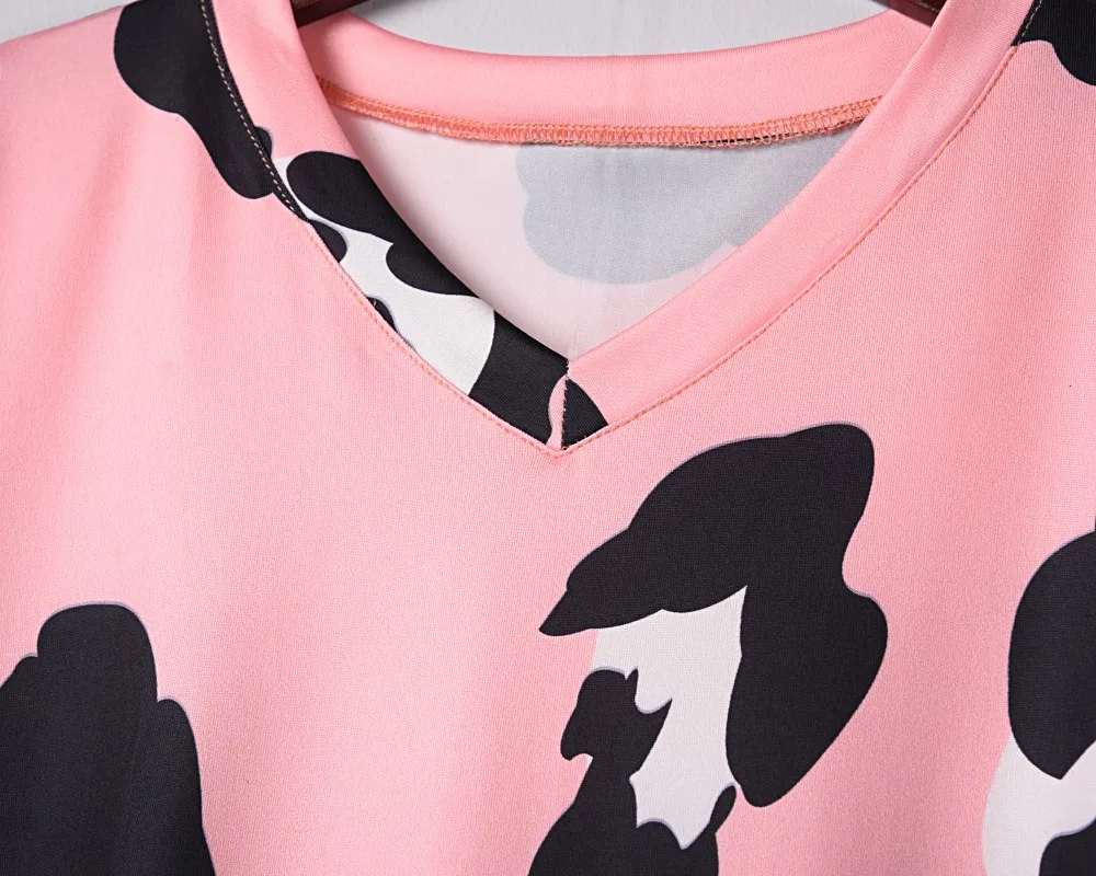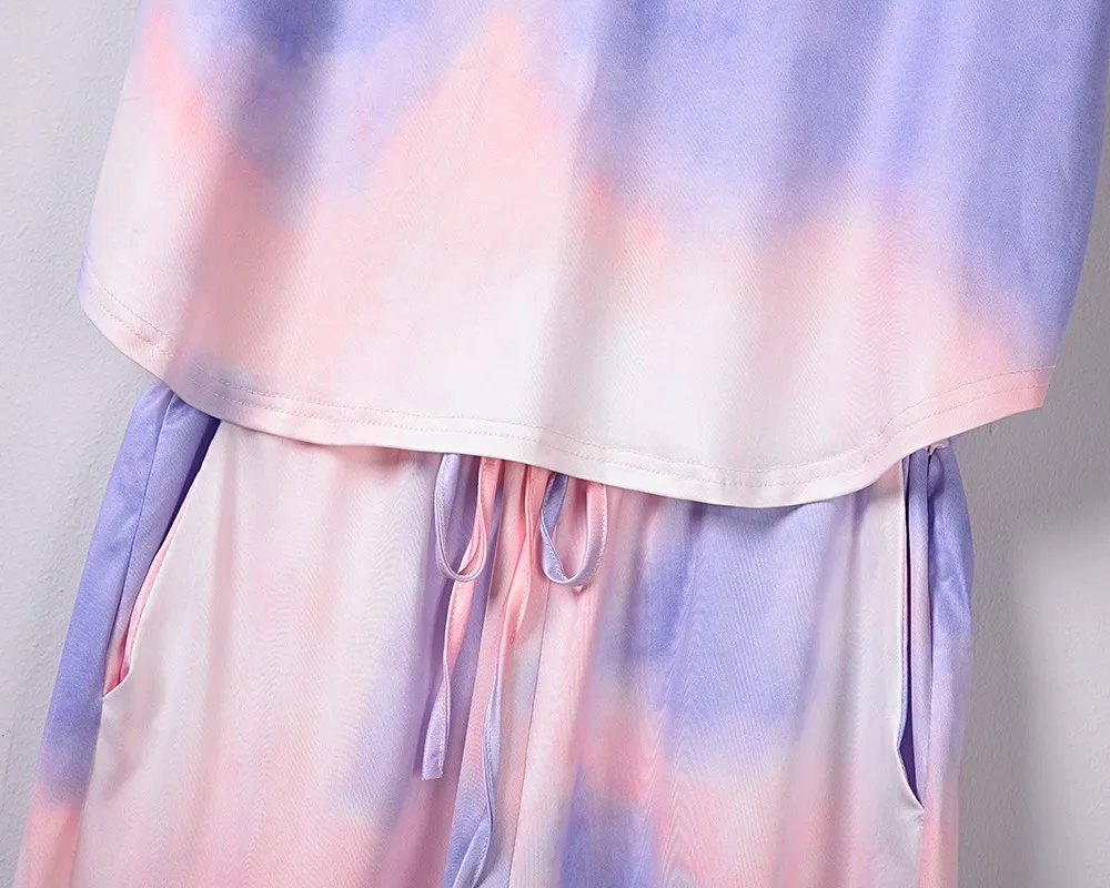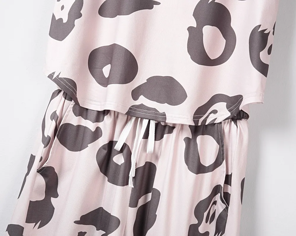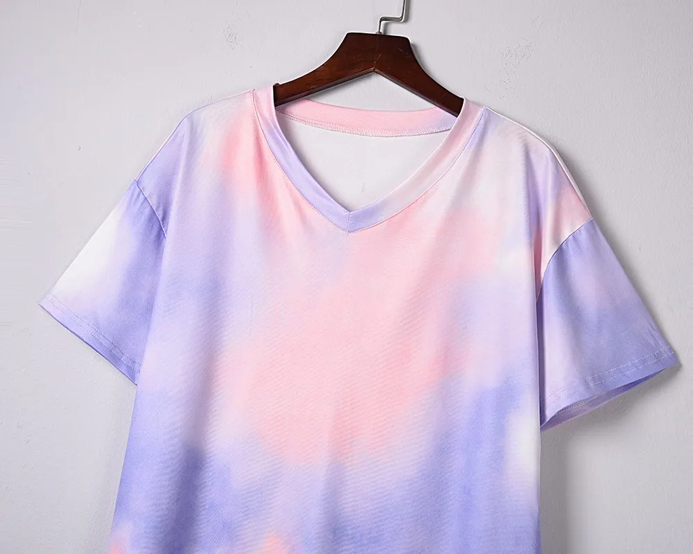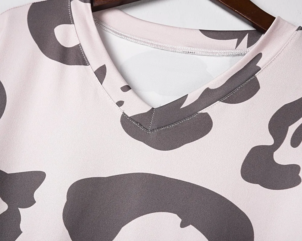 Shorts with elastic waist waistband, drawstring offers more convenient, loose fitting.This pajama sleep set top features v-neck short sleeve top and shorts for relaxed fit, stylish leopard and tie-dye print.