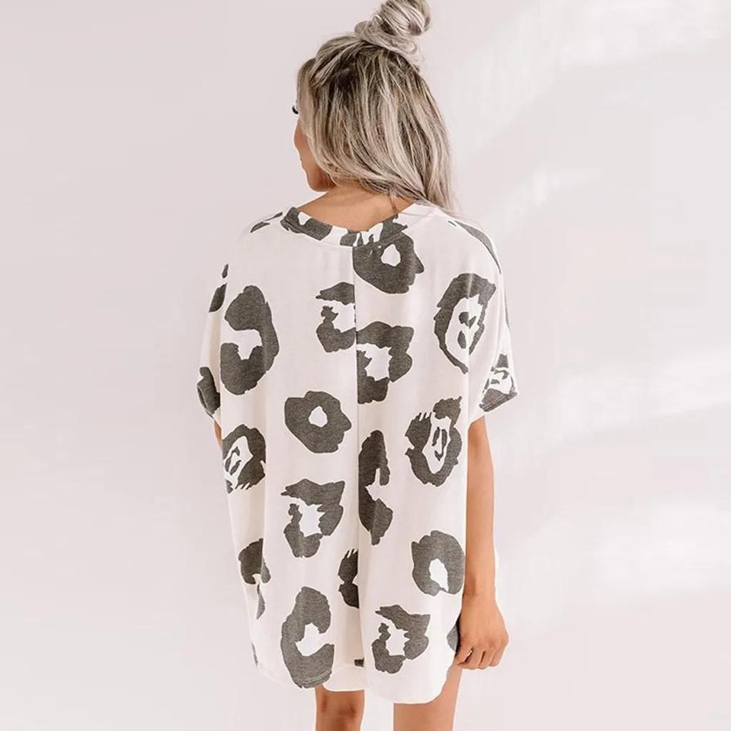 Женский пижамный комплект с галстуком-краской/леопардовым принтом с короткими рукавами, ночная рубашка, короткая одежда для сна