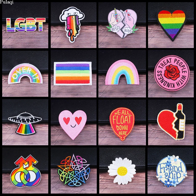 Pulaqi мультфильм Радуга патч буквы ЛГБТ патчи вышитые утюжок на патчи для одежды Флаг Гей наклейки полосы для одежды