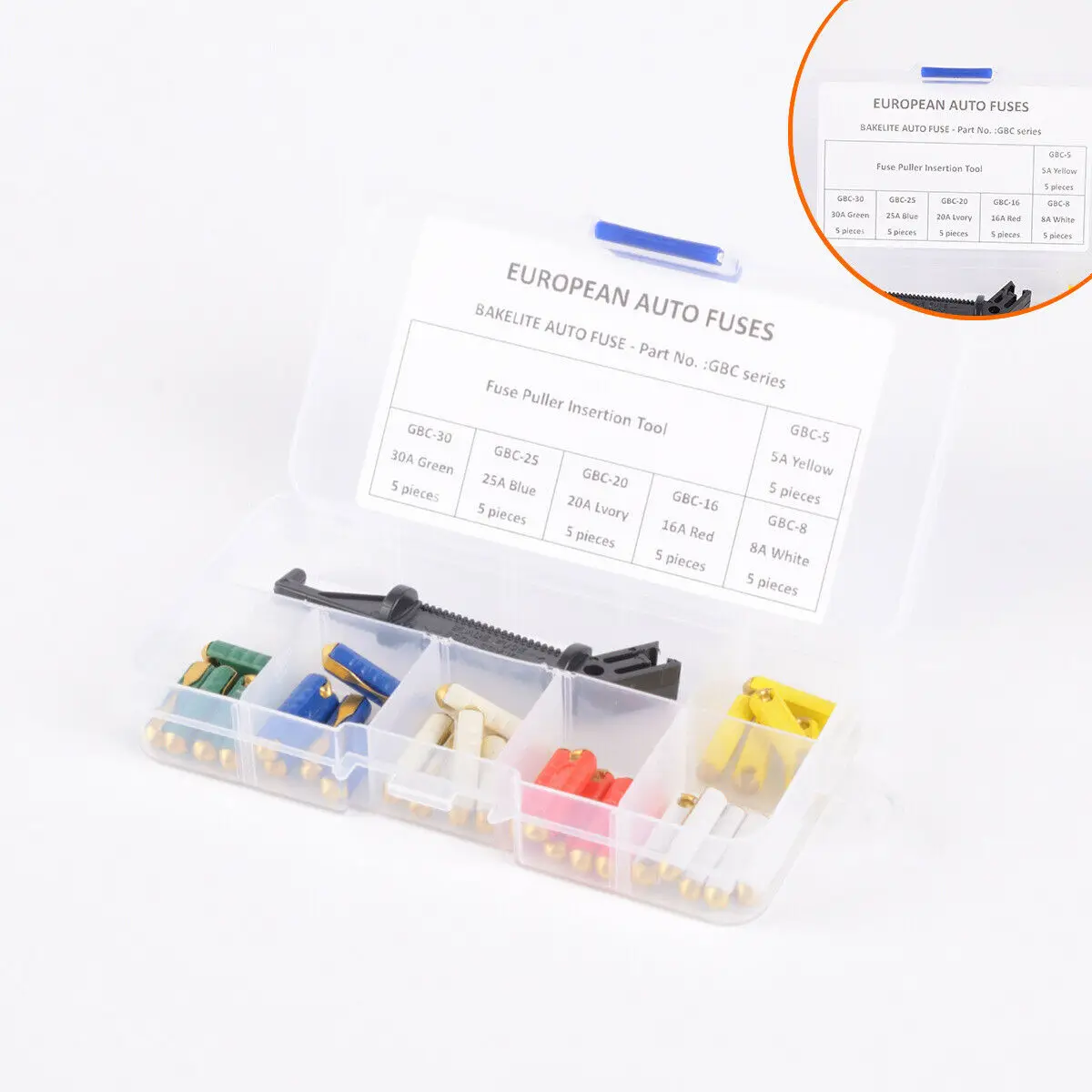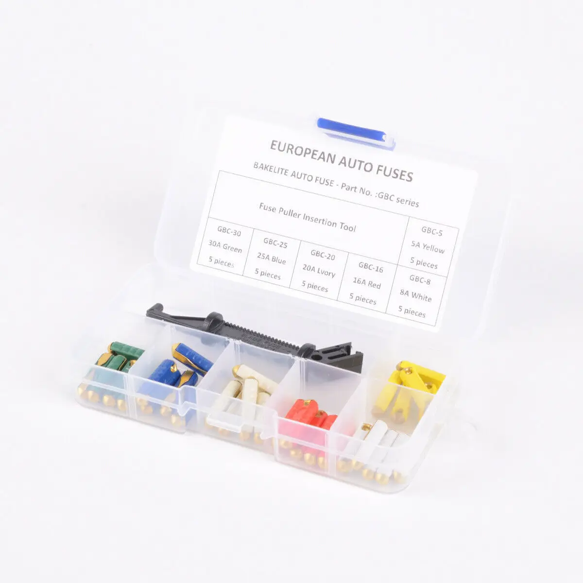 GBC автомобильный европейский автомобиль лезвие предохранитель коробка ассортимент бакелит Авто Предохранители 5-30Amp