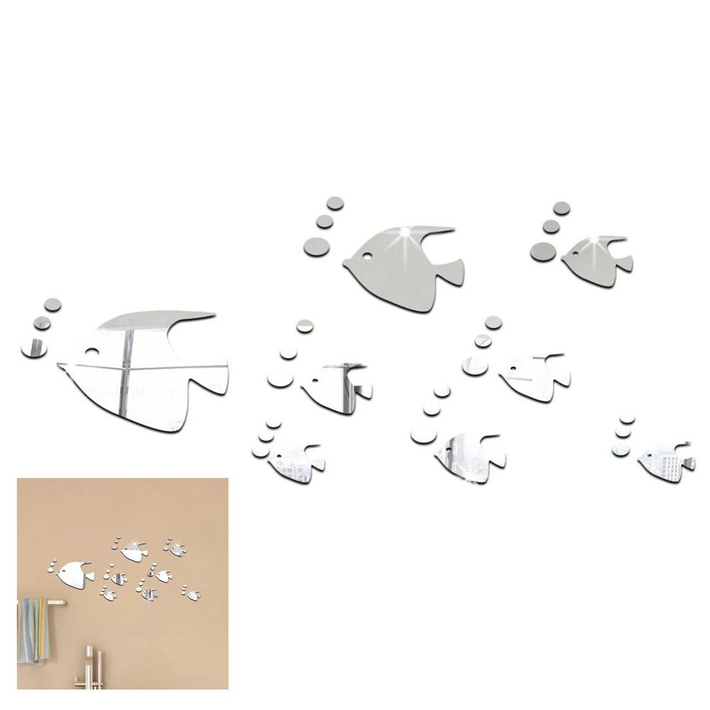 8 шт. x Зеркало в форме рыбы стикер на стену