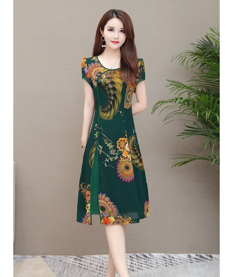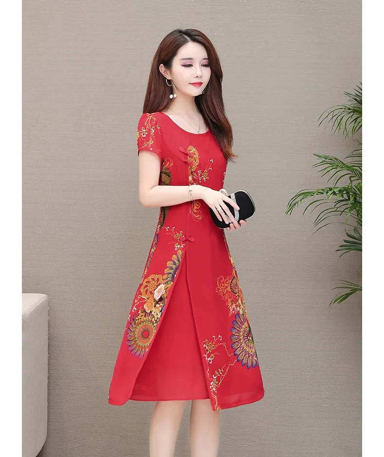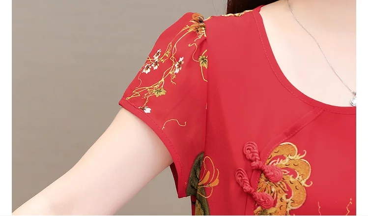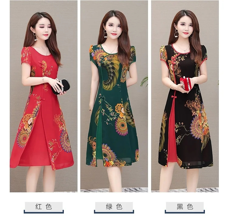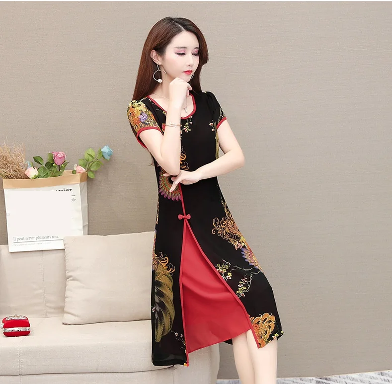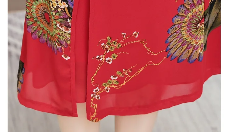 UHYTGF модные шифоновые летние платья для женщин винтажное платье Ципао тонкое женское элегантное платье с принтом тонкого размера плюс платья 783