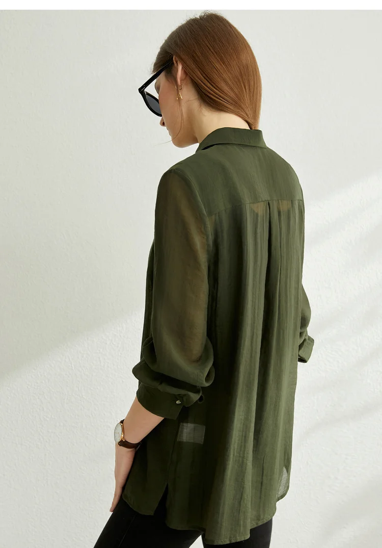 Женская Асимметричная рубашка в клетку Однотонная с длинными рукавами большие