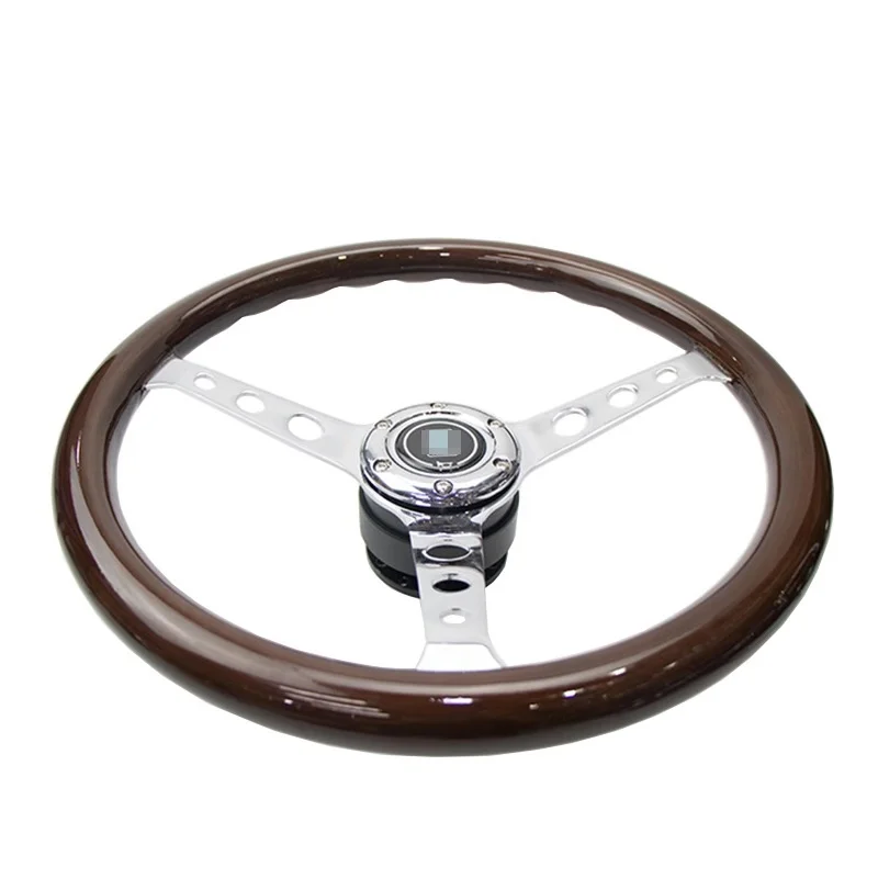 Универсальный 15 дюймов Автомобильный руль классический из цельного дерева серебряные спицы модифицированный гоночный руль с базовым адаптером аксессуары быстросъемный
