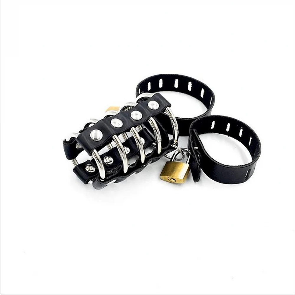 Кожаное кольцо для члена с задержкой секса, Мужская клетка для пениса, рукава для пениса, кольцо для мошонки, секс-игрушка для взрослых, клетка верностиUS $10,80 /