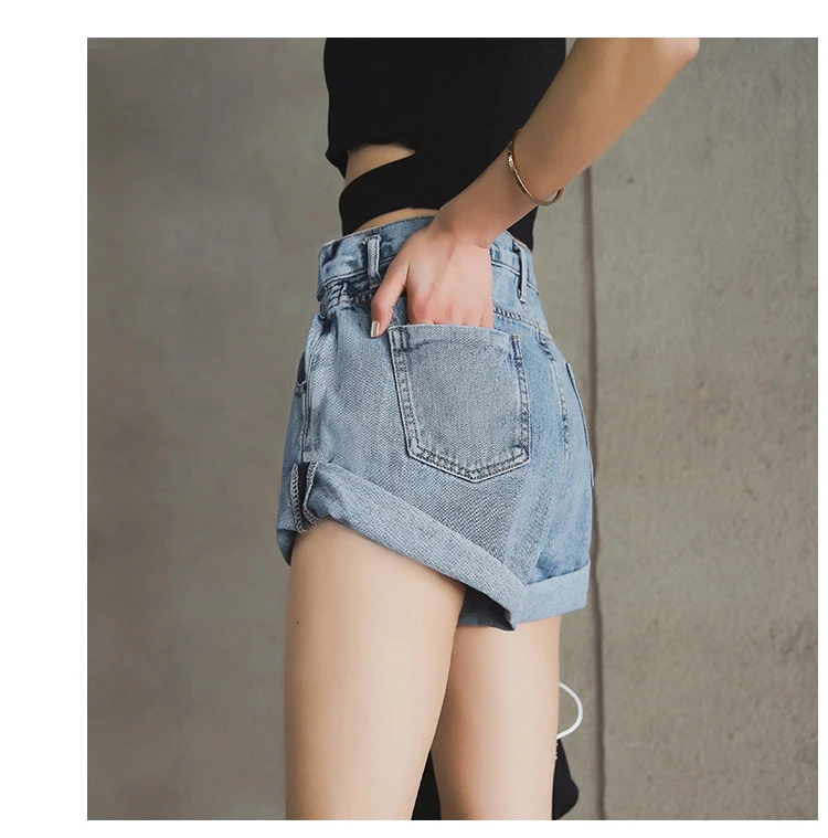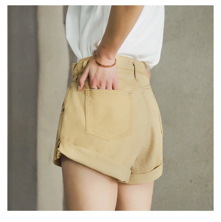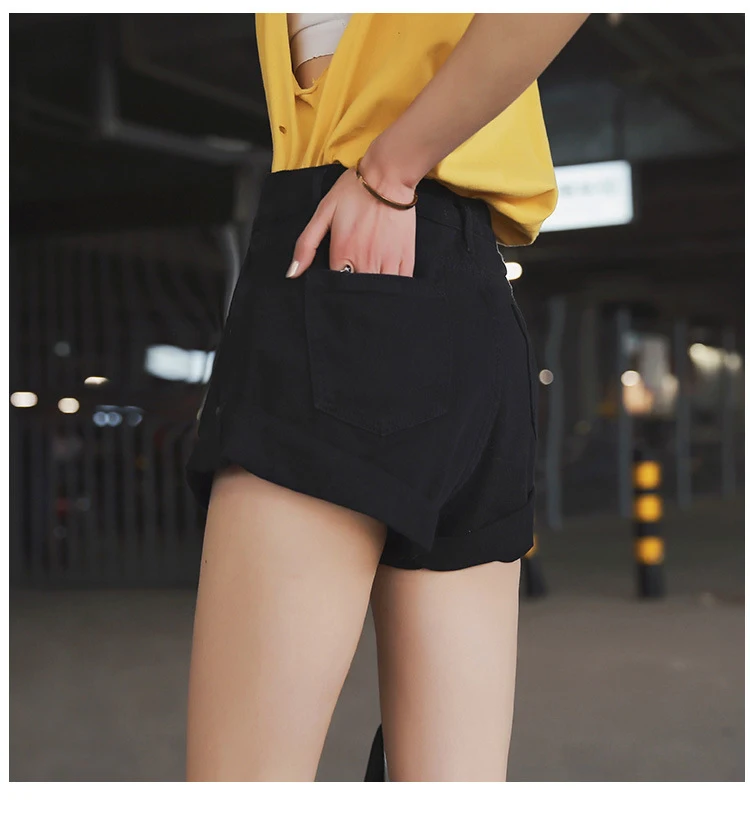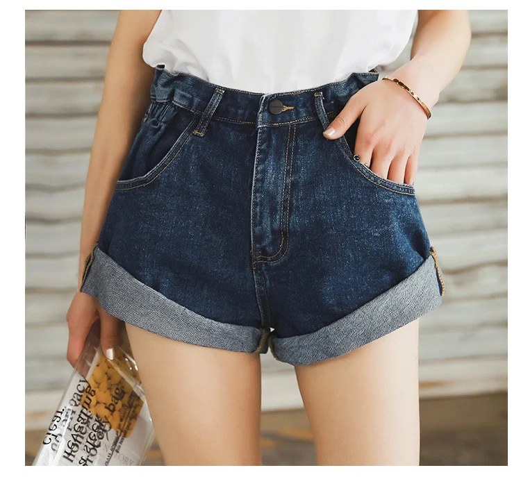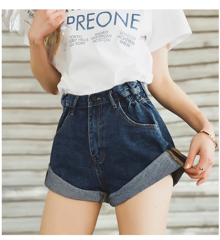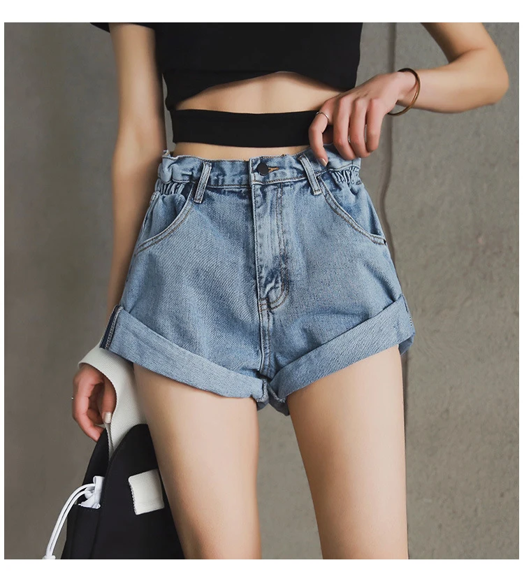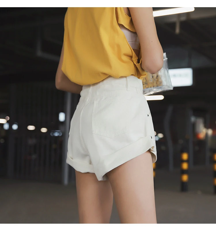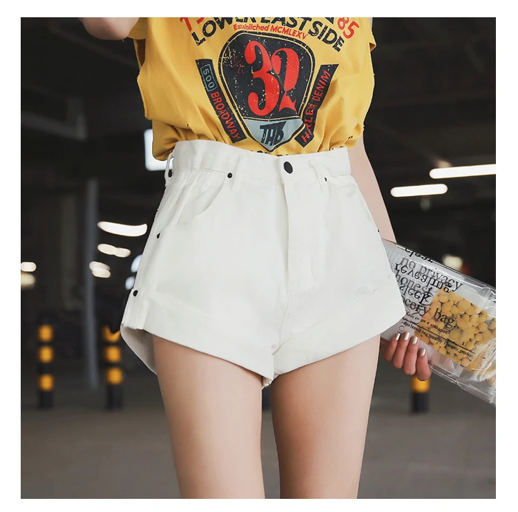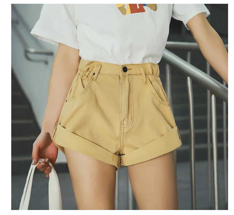 Denim Shorts Women's White Women Short Jeans Khaki Wide Leg Elastic Waist Vintage High Waist Shorts Women Summer