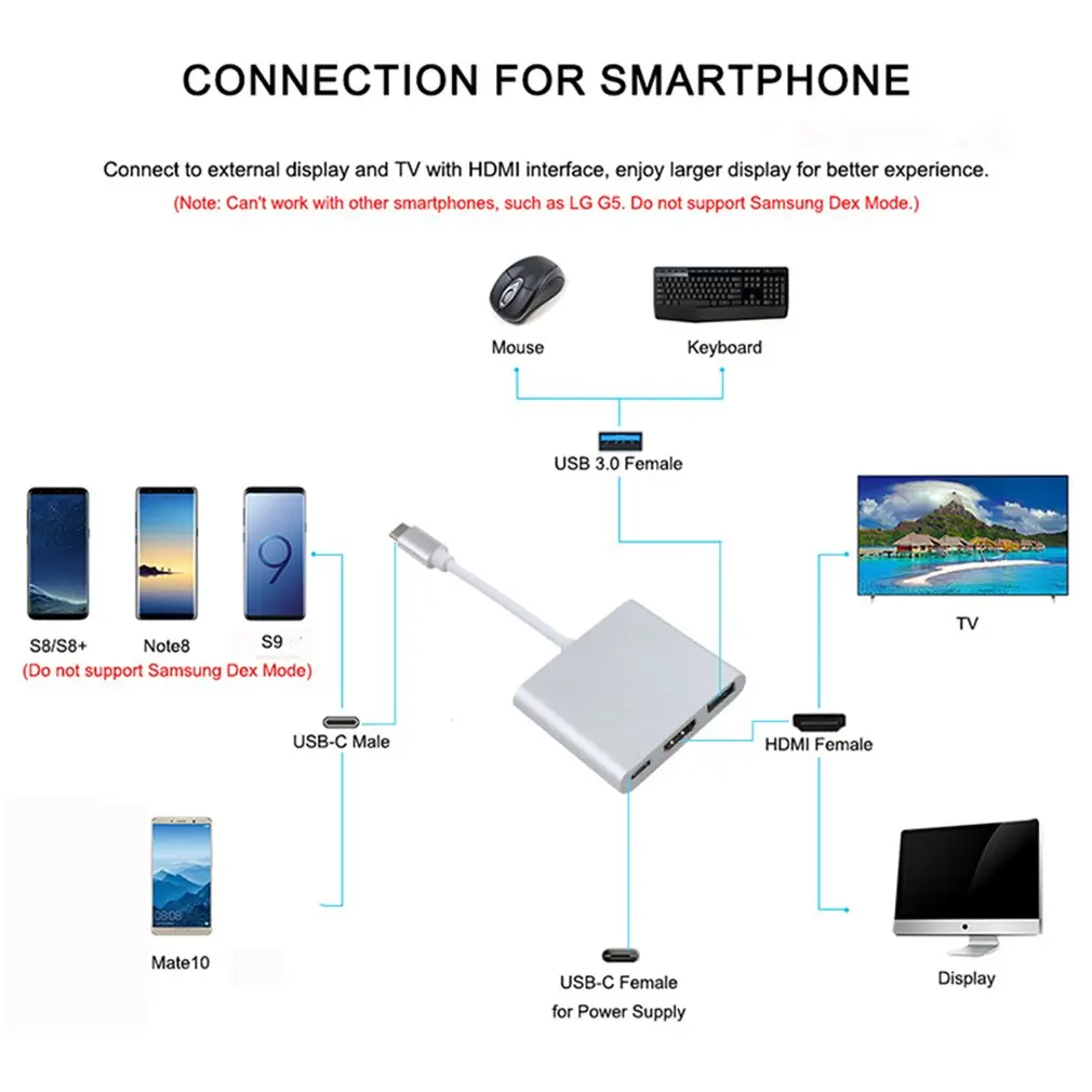 Тип: адаптер 3 в 1 Type-C-HDMI/кабель Type-C-HDMI